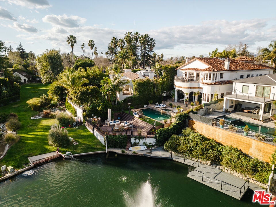 Nestled in the exclusive enclave of Toluca Lake, this elegant 6-bedroom, 4.5-bathroom residence offers unparalleled luxury and sophistication. With a sprawling 5632 SqFt of living space, this home boasts breathtaking views of the tranquil Toluca Lake and majestic mountains. The grandeur of this home is accentuated by the abundance of natural light that fills every corner, creating a warm and inviting ambiance. Step outside onto the balcony to savor the captivating lake vistas or take a dip in the saltwater pool for a refreshing escape. The private BBQ area by the lake offers a perfect setting for outdoor gatherings. Inside, the living room and primary bedroom feature cozy fireplaces, creating a serene atmosphere. The well-appointed kitchen features stainless steel appliances, perfect for culinary enthusiasts. Entertain guests in the formal dining room or unwind in the media/recreation room. The primary suite offers a walk-in closet and a private outdoor space, providing a serene retreat. With only 34 homes on the lake, this is a rare opportunity to live in a piece of Toluca Lake's coveted waterfront. Experience luxury living at its finest in this remarkable Toluca Lake residence.