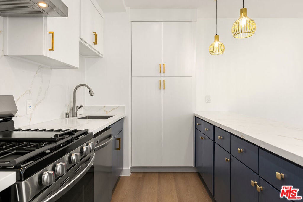 Stylish two-story townhome ADU designed with modern comfort in mind. The home features luxury plank flooring, recessed lighting, skylights, and double-pane windows that fill the space with natural light. The kitchen is a centerpiece of style and functionality, boasting Quartz countertops, a breakfast bar, stainless steel appliances, and elegant lighting fixtures. The primary suite offers a spacious customized closet, a private balcony, and a spa-inspired bathroom with thoughtful design details. Additional highlights include in-unit laundry & central air conditioning and heating controlled by a Nest thermostat. Step outside to a serene outdoor space complete with fruit trees, ideal for unwinding in a peaceful setting. Centrally located near the vibrant dining and shopping scene in Sawtelle Japantown, this home also offers quick access to the 405 and 10 freeways, as well as Westwood, Culver City, and Santa Monica.