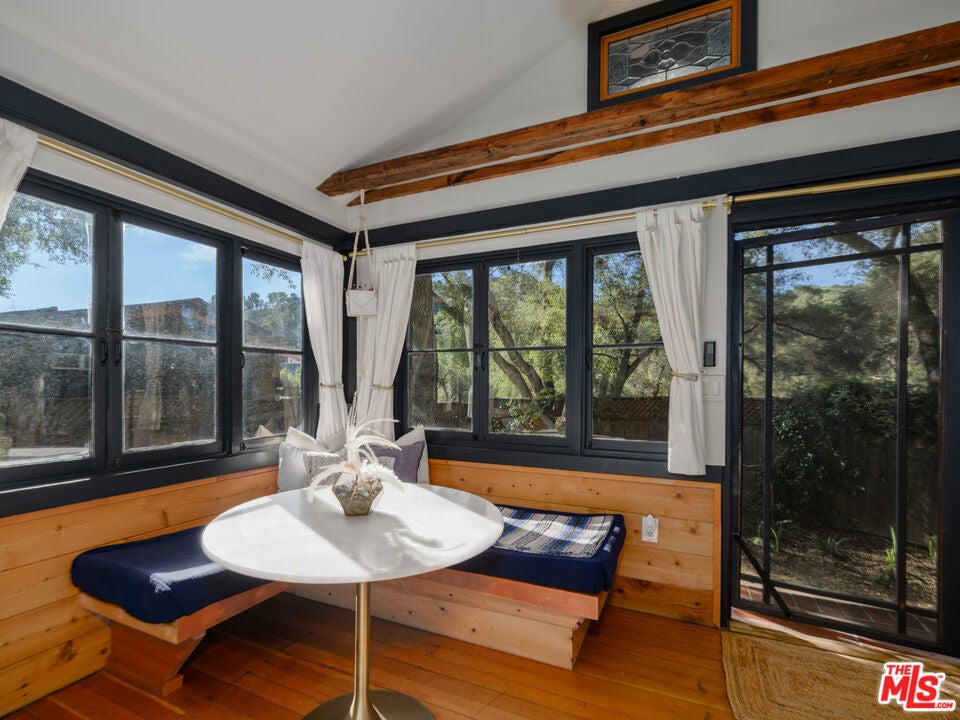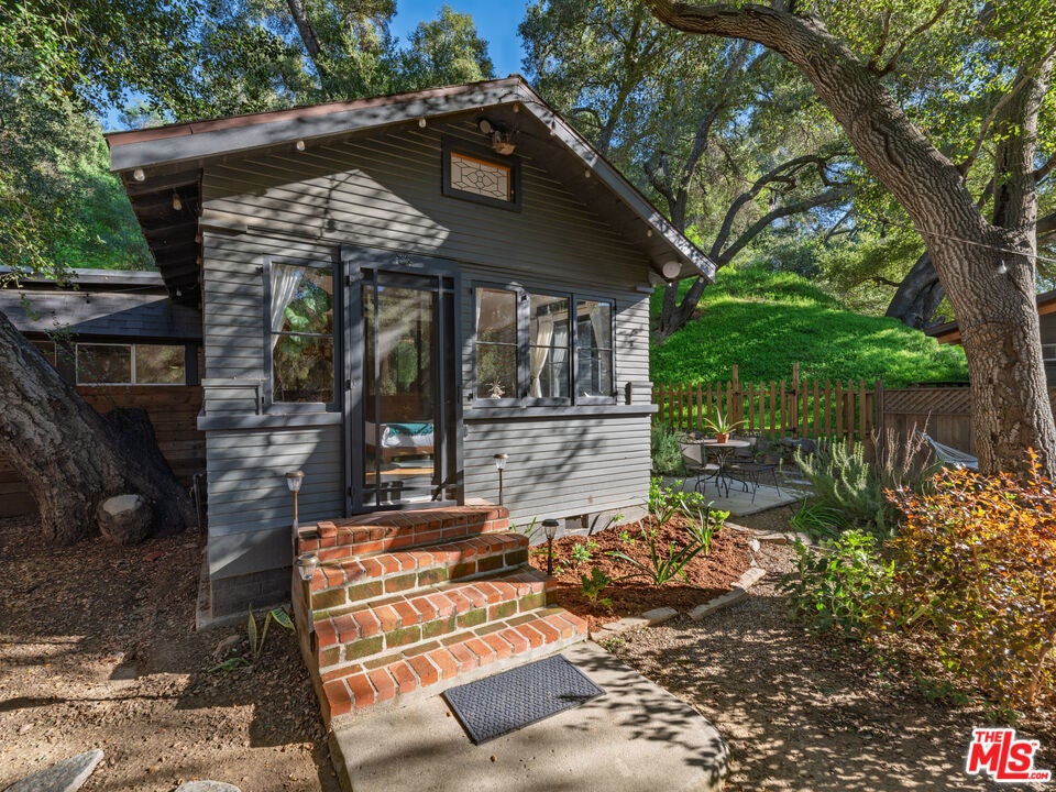 Unique, rustic, dreamy, this Topanga compound could be your own private canyon retreat. Three charming separate structures, situated on an approx. 2/3-acre lot, surrounded by mature oaks, each with its own private outdoor garden and sitting space, the property offers rare flexibility for buyers. Redwood House, (1,339 sq ft) the main two-bedroom, two-bath home features a beamed living room and warm wood details, with a modern treehouse vibe that captures the spirit of Topanga living. Chime House, (1,024 sq ft) a one-bedroom guest house sits in a peaceful garden setting with canyon views, while Crystal House, (315 sq ft) a historic old hunting lodge with a stone fireplace is now an updated detached studio cabin, brings unmistakable bohemian charm. Whether you're looking to live in one and rent the others, create a dedicated home office, host extended family, or build a steady income stream, the options here are wide open. Minutes from shopping, cafes, horseback riding, renowned hiking trails and highly rated Topanga Elementary Charter School. With proximity to nearby Malibu, Calabasas and Woodland Hills, this property offers a range of amenities coupled with privacy, personality, and real potential all in one of Los Angeles' most beloved and storied canyon communities. The property and it's location is the perfect balance of quiet and culture.