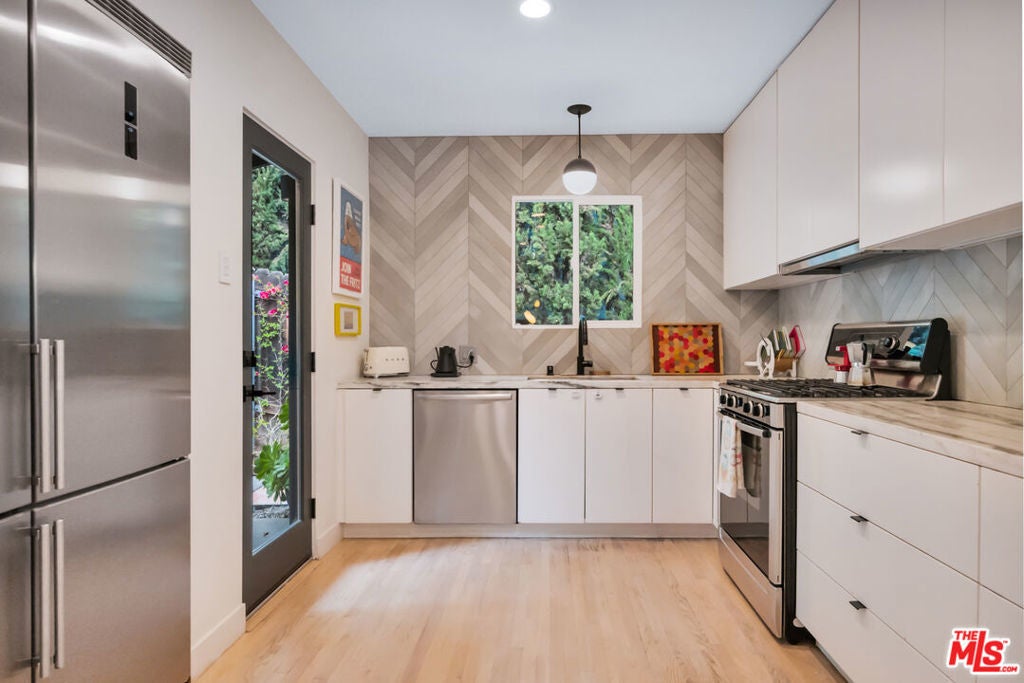 SHORT TERM FURNISHED 3-5 MONTH LEASE ONLY/AVAILABLE ONLY LEASES AVAILABLE April 1st to August 25, 2026: Situated in the San Rafael Hills, this home combines California Mid-Century elements with carefully curated finishes and high-end European design. Step onto the original red oak floors that have been refinished in Nordic white. The clean, minimalistic aesthetic is accentuated by a wall of glass that opens the living room up to a spacious deck that provides incredible opportunities for aa seamless indoor-outdoor lifestyle. Exposed beams, a skylight, and a private balcony make the versatile office space feel like a serene retreat. The kitchen features Bosch appliances and dual European-style refrigerators built flush into the wall. The contemporary bath is lined with large-format tile by Vives Ceramica of Spain and fixtures from Hansgrohe of Germany. Original built-ins abound, and corner windows and deck access bathe the primary bedroom in natural light. The tiered backyard offers space to entertain among the grass, hardscape, or in the hot tub below. A large laundry room is steps away from the back door. This turnkey modernist home is available for short-term furnished rental opportunities beginning on June 1. Electricity, gas, water, and wireless internet is included. Located in one of the most desirable neighborhoods of Pasadena, this delightful offering, is close to Eagle Rock, and Highland Park. The 110, 134, and 2 are also nearby providing easy access to the best bars, restaurants, boutiques and shops that Northeast Los Angeles and Pasadena have to offer.