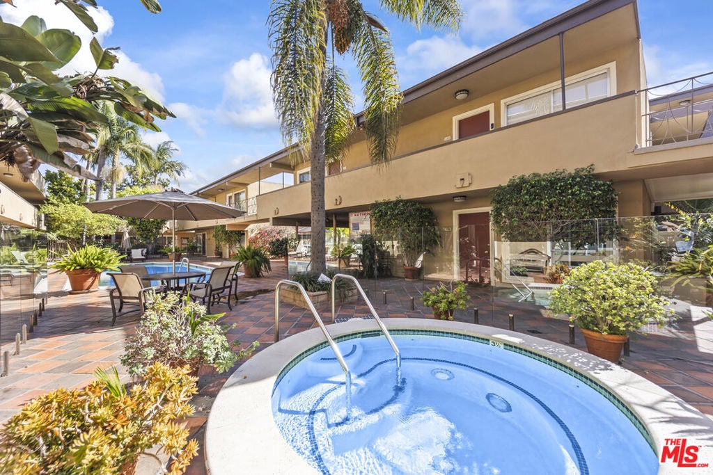 Prime West Hollywood Top-floor Corner residence - a beautifully designer-remodeled, move-in-ready retreat offering style, light, and comfort. Bathed in natural sunlight from multiple skylights, this light-filled home exudes warmth and sophistication with beautiful flooring throughout. The stunning open-concept kitchen has been thoughtfully remodeled with sleek newer cabinetry, stunning tile floors, stainless steel appliances, glowing granite countertops, and a breakfast bar perfect for entertaining or casual dining. The spacious layout features two generously sized bedrooms with ample storage, including a serene primary suite with a private en-suite bath. Gleaming hardwood floors, newer carpet, and updated windows enhance the home's modern appeal. A convenient in-unit stacked washer and dryer adds everyday ease. Enjoy the security of a gated garage with dedicated parking and additional storage. Ideally situated adjacent to the community's resort-style amenities, residents enjoy access to a sparkling pool, relaxing spa, and lush green space creating a peaceful oasis in the heart of the city. Located just moments from West Hollywood's trendy boutiques, acclaimed restaurants, and vibrant nightlife, this exceptional home offers the very best of urban living. A rare top-floor corner opportunity - not to be missed.