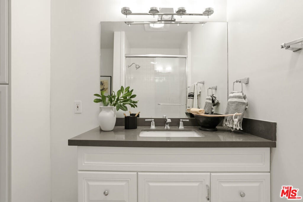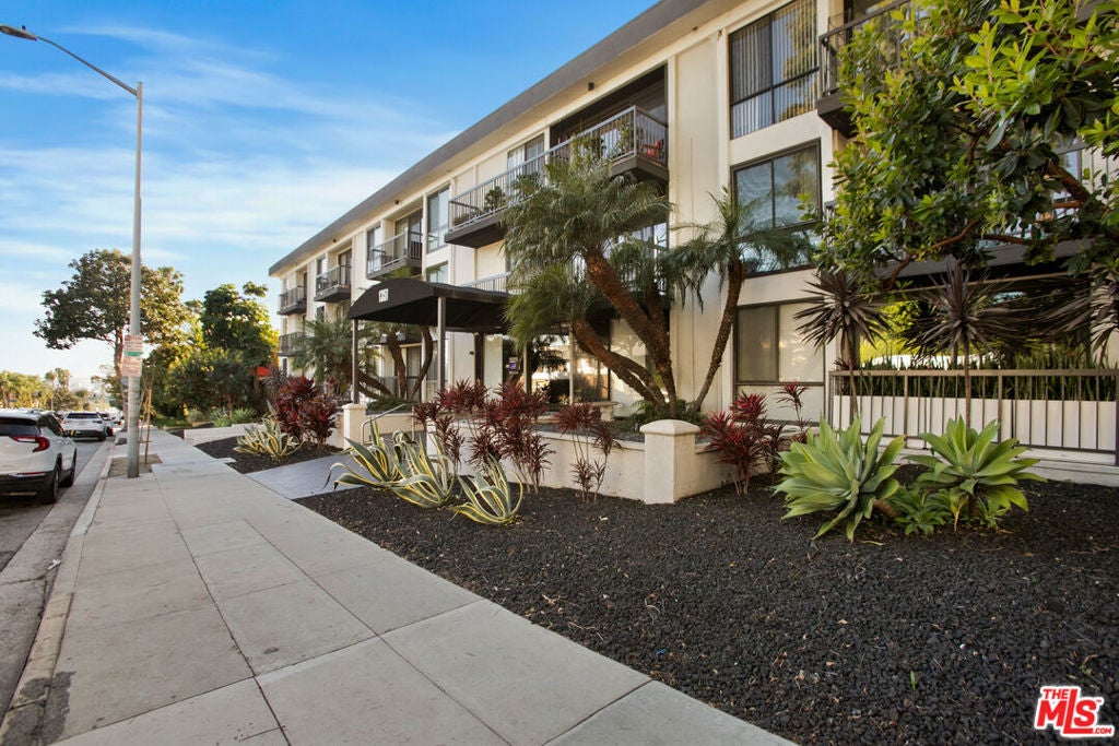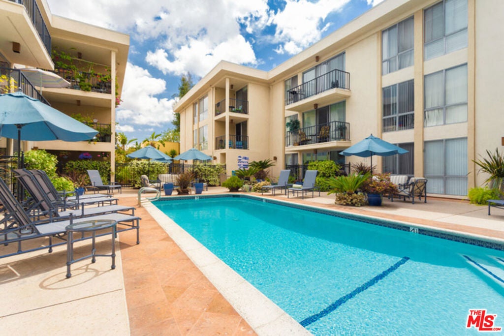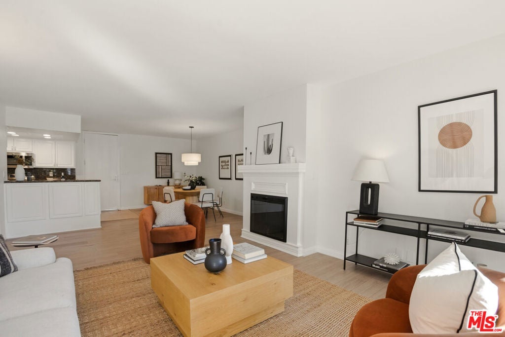 Centrally located just off the Sunset Strip in West Hollywood, this 2-bedroom, 2-bath, 1202 Sq. Ft. condo offers walkability to restaurants, cafes, grocery stores, entertainment, and the nearby movie theater, while positioned quietly in the rear of the building away from Crescent Heights Blvd with light and bright peaceful tree-top views. The open-concept living and dining area features hard-surface flooring throughout, a new electric fireplace, and a wall of glass with sliding doors leading to an oversized private balcony. Bedrooms are thoughtfully positioned on opposite sides of the unit, offering added privacy for guests, roommates, or a home office configuration. The open kitchen includes granite countertops and backsplash, brand new stainless steel appliances, and a dedicated dining area ideal for entertaining. The primary suite features an en-suite bathroom with a glass-enclosed tiled shower and organized closet systems. The secondary bedroom is adjacent to an updated hall bathroom with a sliding glass tub/shower enclosure. In Unit Laundry Hookups Can Be Installed. Building amenities include a new ButterflyMX video secure formal lobby, under construction pool/courtyard/lounge area, dedicated fitness room with controlled access, and earthquake insurance. Two car tandem parking included with extra storage. An excellent opportunity for buyers seeking a centrally located West Hollywood condo with privacy, amenities, and strong walkability.