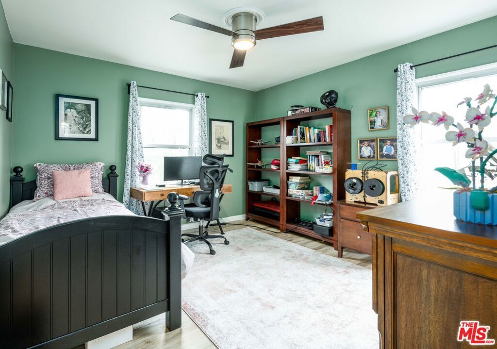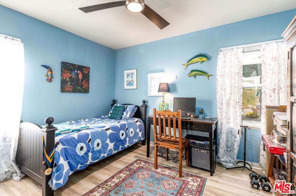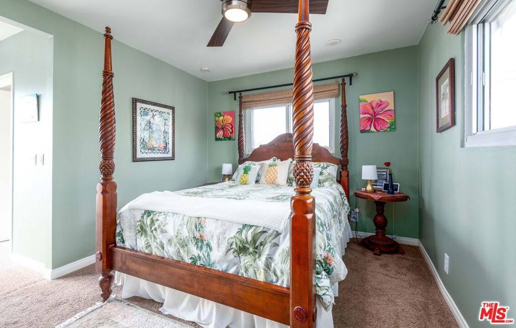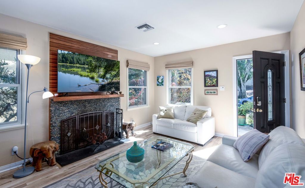 Located adjacent to the Westchester Golf Course on a non-through street with greenbelt views, this delightful home with vibrant landscaping is ideal for those who desire space and functionality. Past the canopy of the graceful California pepper tree step into an inviting living room featuring luxury vinyl plank flooring and custom fireplace with decorative stonework and zebrawood mantel. The modern kitchen features quartz countertops, stylish tile backsplash, and stainless-steel appliances. The space is anchored by a central island with breakfast bar that's ideal for entertaining or casual dining. 4 bedrooms and 2 full bathrooms are downstairs, while upstairs is the private ensuite with its own balcony...perfect for relaxing or enjoying the fresh air and sunshine. The enchanting backyard boasts a variety of plants and trees, as well as a separate fruit and vegetable garden. Additional highlights include copper plumbing, tankless water heater, soundproof windows, automatic sprinklers, and 2-car garage. With easy access to beaches, LAX, and numerous shopping and dining destinations, this is an exceptional find in Westchester.