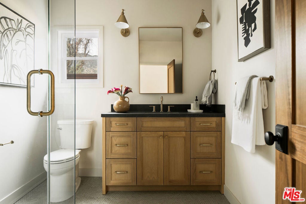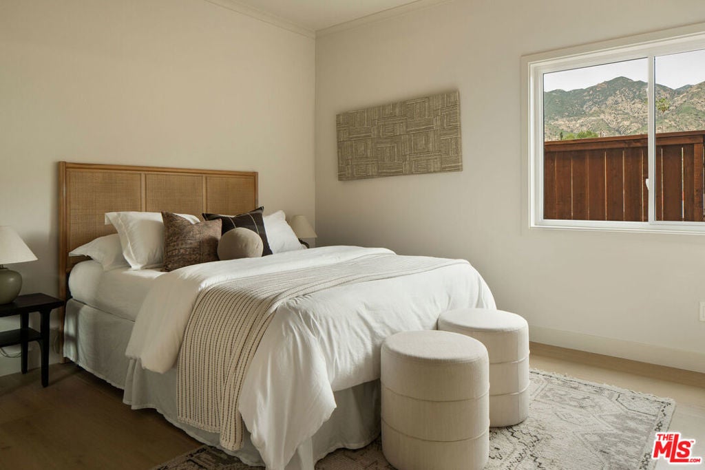 Originally built in 1948 and thoughtfully rebuilt in 2025, this beautiful 4 bedroom, 3 bathroom Altadena home spans approximately 2,110 square feet and blends classic California charm with modern design and resilience. Reconstructed on its original footprint and foundation following the Eaton Fire, the residence was developed with a deep commitment to craftsmanship, safety, and longevity, resulting in a home that feels both grounded in its history and entirely renewed. A newly landscaped front yard welcomes you inside to a bright, open-concept main living area designed for effortless everyday living. At the front of the home, a charming sitting area with a bay window captures beautiful natural light. The showstopping kitchen sits at the center, appointed with a large island, porcelain countertops, custom soft-close cabinetry, designer lighting, and a full Thermador appliance suite including a range and oven, double-drawer refrigerator, dishwasher, undercounter microwave, and beverage drawer. Just beyond, the family room provides a relaxed gathering space with easy flow to the outdoors. Off the main living area, the first bedroom with French doors offers flexibility as a guest room or office, with a full bath nearby featuring curated tilework. Two additional bedrooms are complemented by custom hallway built-ins and a washer and dryer conveniently located in a sizeable hallway closet near the bedrooms, complete with shelving for additional storage. Privately positioned at the rear of the home, the primary suite offers a serene retreat with a walk-in closet and a spa-like bath featuring a frameless glass shower, custom cabinetry, and designer fixtures. A sliding door opens to its own patio, creating an effortless indoor-outdoor connection. Outdoor living is thoughtfully designed, featuring an elevated patio for al fresco dining and a grassy side yard surrounded by custom landscaping and hardscaping with underground irrigation. Modern upgrades include a Control4 smart home system with Lutron lighting, Sonos audio, central iPad control, security cameras, Starlink internet (two years prepaid), new HVAC, a tankless water heater, upgraded electrical and plumbing, underground power lines, and solar panels. Fire-conscious construction- complete with a spark-resistant composition roof and concrete composite siding- adds peace of mind, while a high-ceiling two-car garage completes the property. Located in Altadena near beloved local restaurants, coffee shops, and neighborhood markets, with easy access to hiking trails and the scenic San Gabriel foothills, this thoughtfully rebuilt residence offers modern comfort, elevated design, and a fresh chapter in a cherished community.