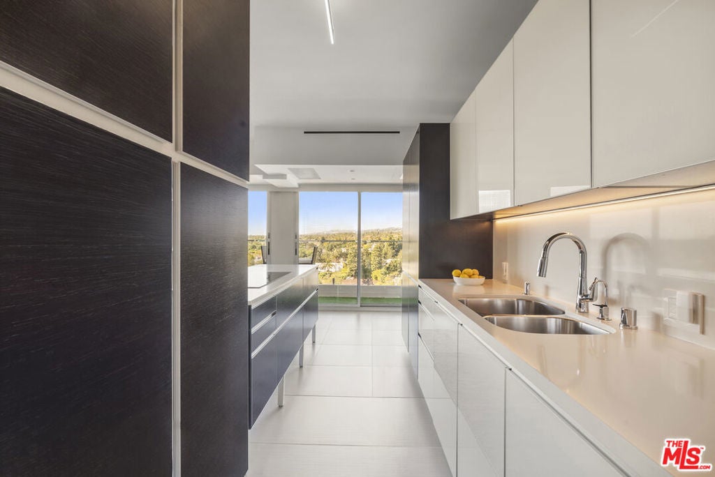 Positioned on the 12th floor of iconic 838 Doheny, this two-bedroom, two-bath residence offers one of the building's most sought-after floor plans with unobstructed west-facing views over Beverly Hills. Wrapped in glass, the residence was reimagined with custom finishes throughout, including a German Alno kitchen, Calacatta Borghini de Oro marble baths, bespoke Kneedler Fauchere wallcoverings, tall custom doors with curated hardware, Lutron linear lighting, smoked glass architectural elements, new appliances, and an integrated smart home system. Fleetwood sliding glass doors open to an extended terrace with panoramic city and mountain vistas framed by endless Sunsets. *Can be sold fully furnished.* The building has completed a $14M structure modernization and offers 24-hour concierge and valet, on-site management, two pools, and a newly renovated rooftop fitness center.