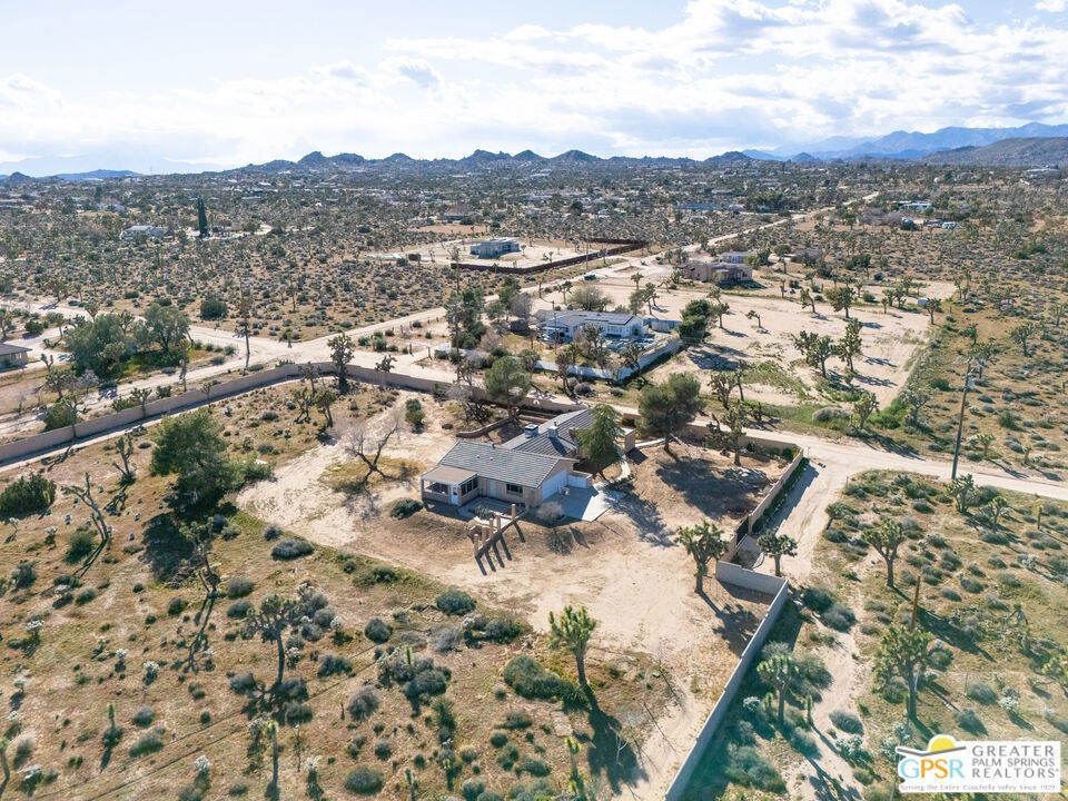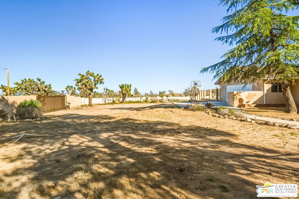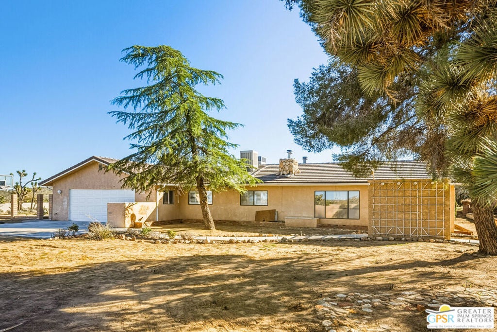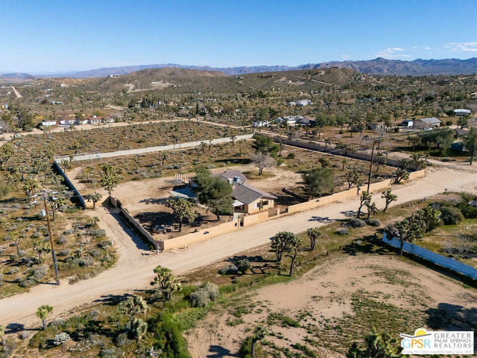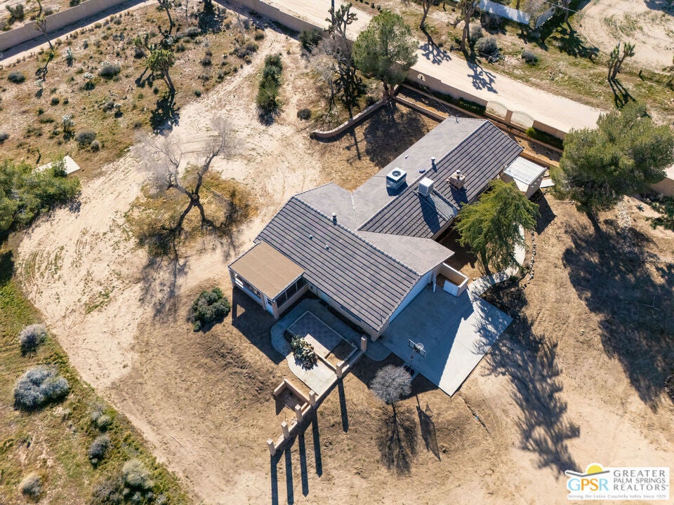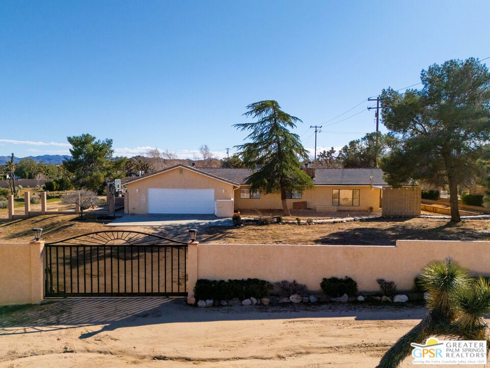 LOOKING FOR A PRIVATE WALLED GATED ESTATE TYPE PROPERTY? THIS IS IT. A unique property with a cabin type feel with a beautiful rock fireplace in the great room. Two small stove fireplaces one in the kitchen and one in the primary. Great floor plan with big primary with attached jacuzzi room and sun porch. HUGE PROPERTY with room for ADU, TENNIS COURT, POOL or extra garage buildings if you're a car collector or a contractor with work vehicles. Open and expansive desert views. THIS ONE IS SPECIAL AND HAS SO MUCH POTENTIAL.