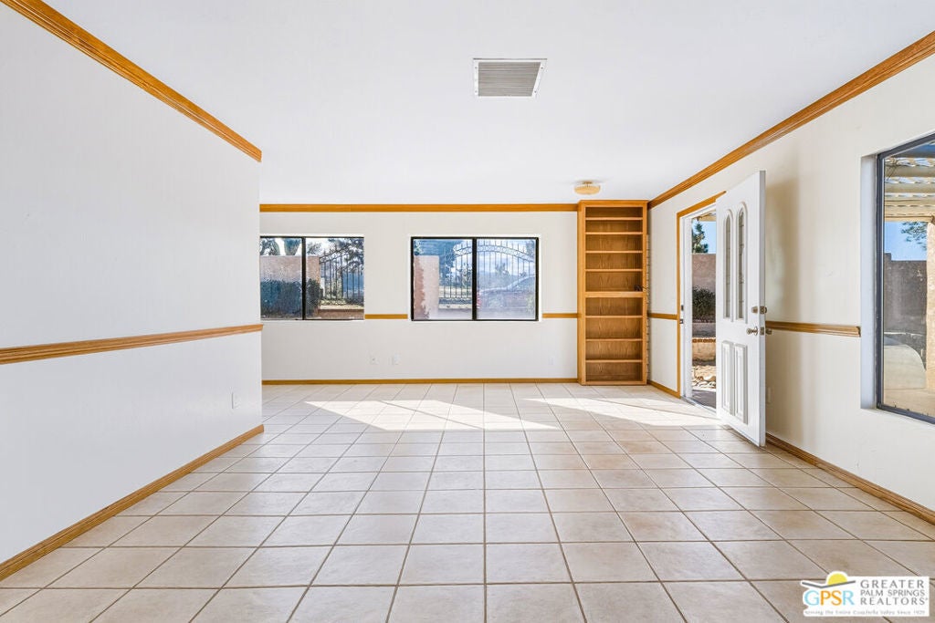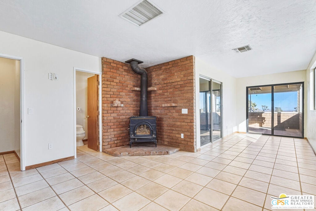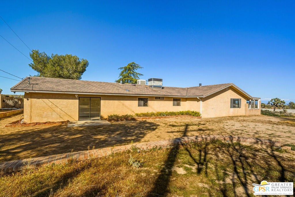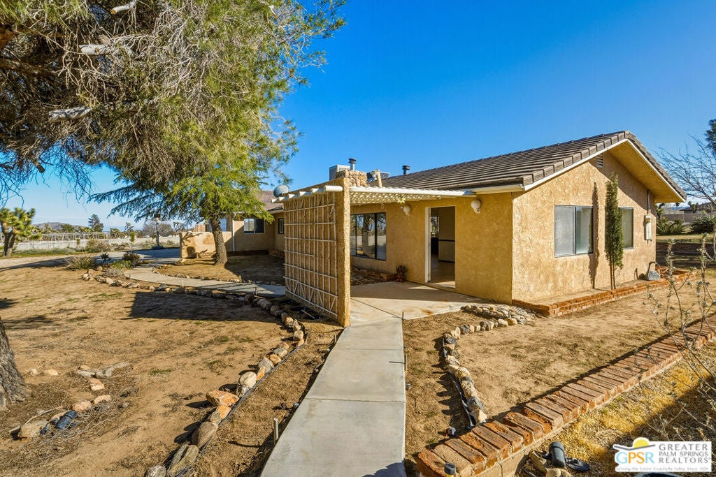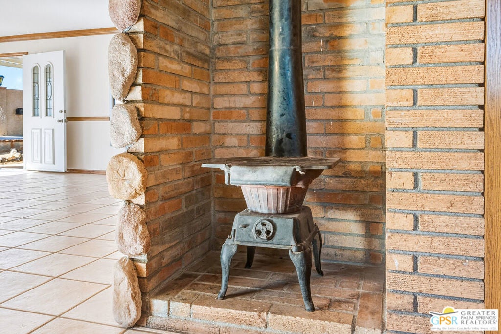 LOOKING FOR A PRIVATE WALLED GATED ESTATE TYPE PROPERTY? THIS IS IT. A unique property with a cabin type feel with a beautiful rock fireplace in the great room. Two small stove fireplaces one in the kitchen and one in the primary. Great floor plan with big primary with attached jacuzzi room and sun porch. HUGE PROPERTY with room for ADU, TENNIS COURT, POOL or extra garage buildings if you're a car collector or a contractor with work vehicles. Open and expansive desert views. THIS ONE IS SPECIAL AND HAS SO MUCH POTENTIAL.