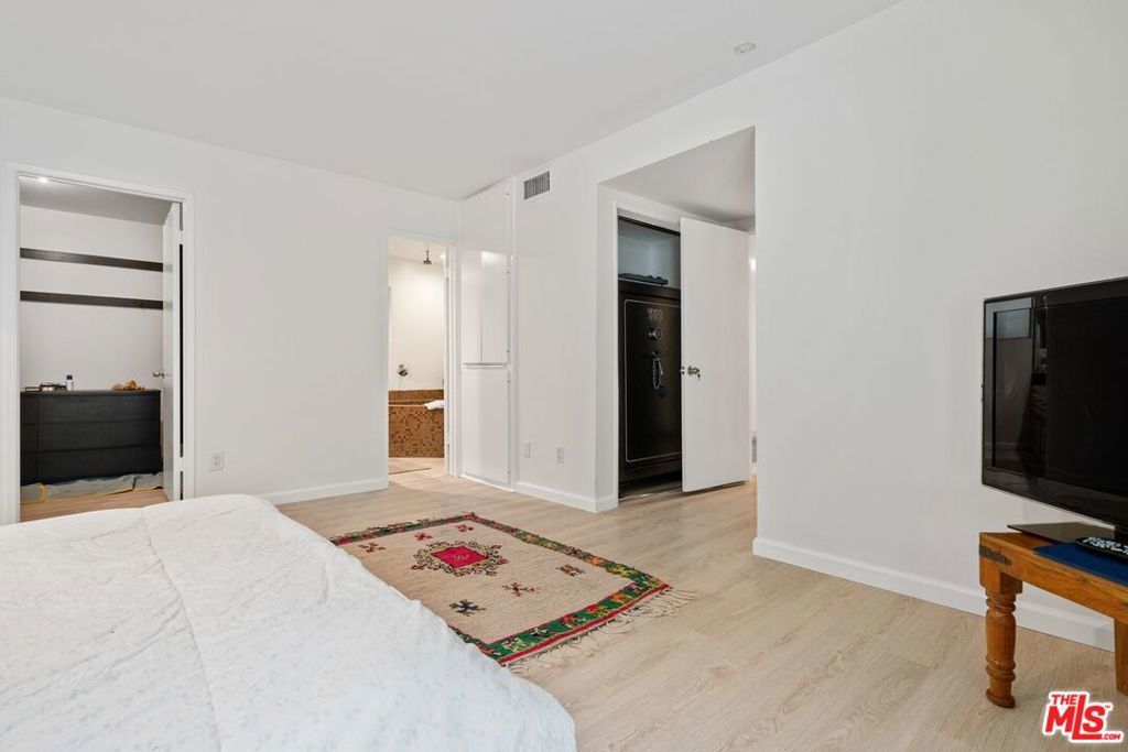An exceptional offering of refined mid-century living with an atmosphere that is both sophisticated and effortlessly relaxed. Truly a rare and special residence. Privately situated on a quiet cul-de-sac, this impeccably maintained single-level home delivers the ideal balance of seclusion and immediate access to the finest dining, shopping, and cultural amenities Los Angeles has to offer. Designed for seamless indoor-outdoor living, the open floor plan unfolds around a striking pool, with all major rooms oriented to capture the serene setting and create a fluid connection to the outdoors an entertainer's dream with complete privacy at the pool. Rich hardwood floors run throughout, enhancing the home's clean architectural lines. The elegant primary suite serves as a tranquil retreat, featuring a luxurious bath and a huge walk-in closet. Two additional generously scaled bedrooms complete the thoughtfully designed layout. A rare opportunity to experience Southern California living at its most polished and timeless.