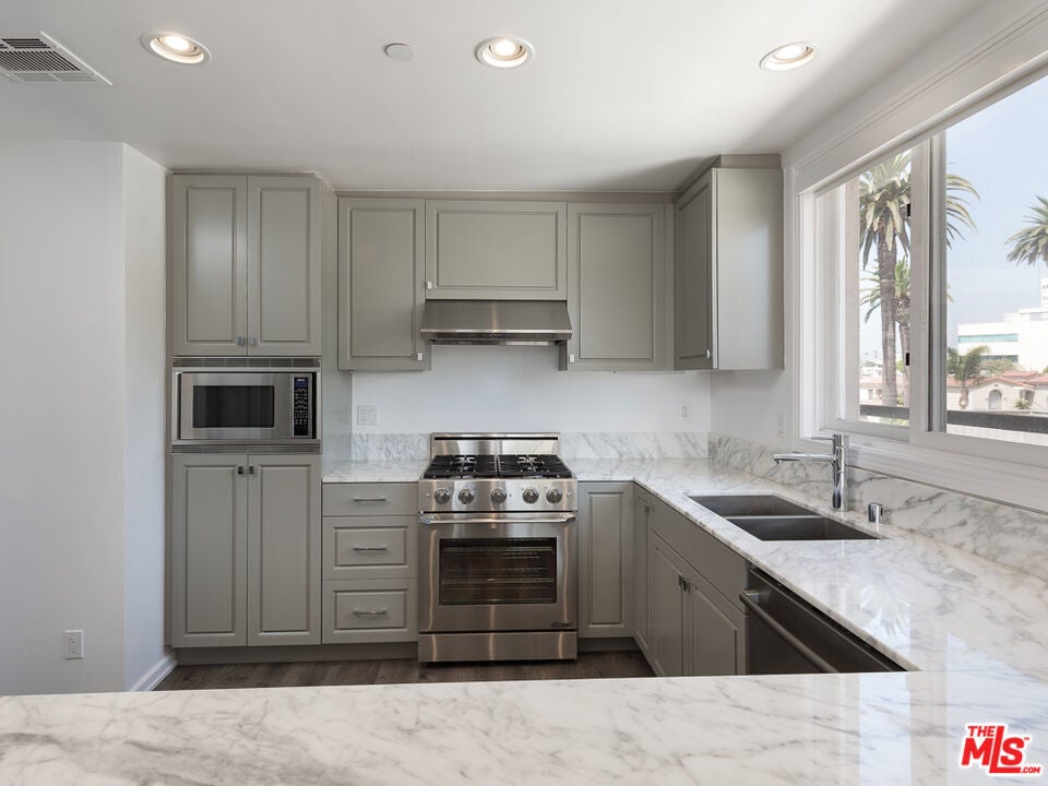 Tastefully renovated 3 Bedroom, 2.5 bath apartment home. Located in prestigious Beverly Hills, near all that Beverly Hills has to offer, this beautiful home features lots of natural sunlight, beautiful Calcutta Marble counter tops, in-unit washer/dryer, central air and heat, designer kitchen cabinets, large closets and new laminate hardwood flooring throughout living spaces and carpeting in bedrooms. As a resident, enjoy the community spa or relax in our outdoor lounge. Across the street from La Cienega Recreational Park. Includes side by side parking.