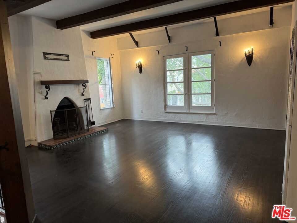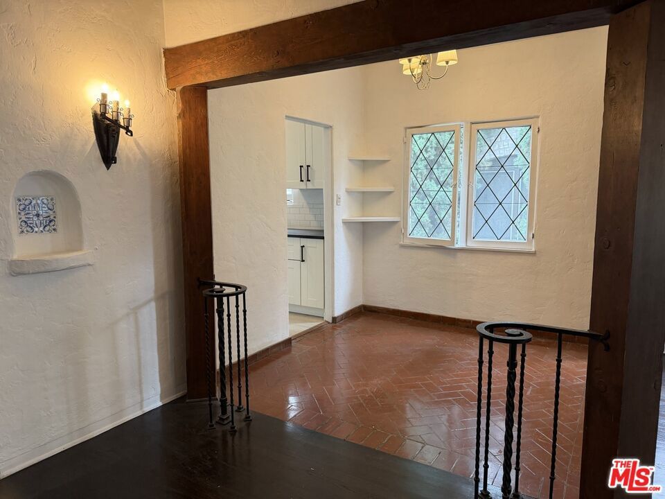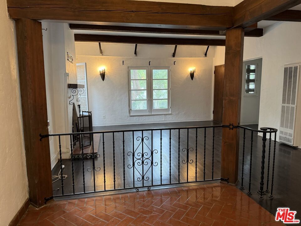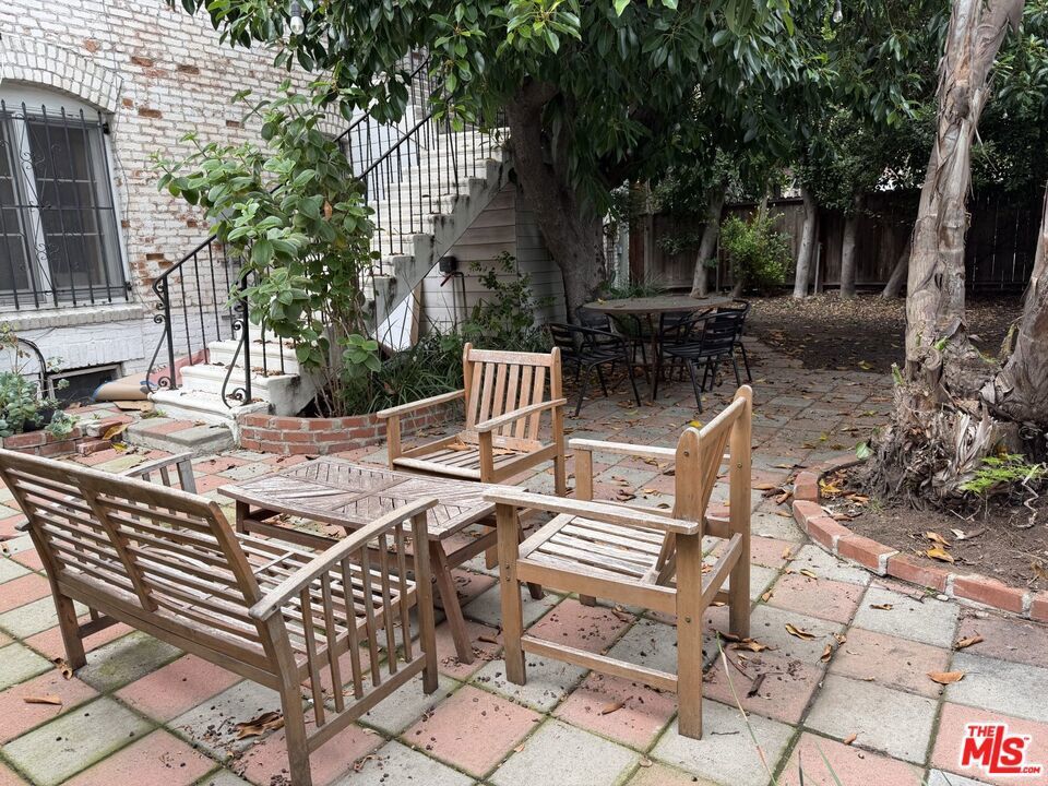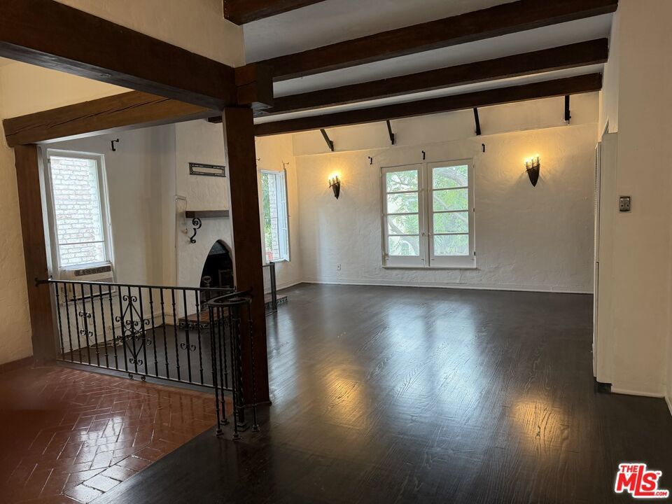 Architectural details of Spanish heritage take you back in time to culture and decor at another level. This small four-unit community ideally situated in one of West Hollywood's most coveted pockets, moments from Santa Monica and Sunset's iconic corridors. Set along a picturesque tree-lined street near, among similar historically significant brick fourplexes, it is a reminiscent of the Andalusia region of Mediterranean Spain. Meticulously restored whitewashed brick exterior, wood shutters, Juliet balconies and a classic tiled roof offering timeless architectural presence. The upper level residence features formal dining room with beamed ceilings, wood-burning fireplace, rich dark hardwood floors and original tile and light fixtures. The unit was recently remodeled with new kitchen, Caesarstone countertops, stainless steel appliances, and a new luxurious bath. A romantic courtyard, private one-car garage with additional assigned parking in front of the garage, and on-site laundry add convenience. Sophisticated living with immediate access to premier dining and entertainment.