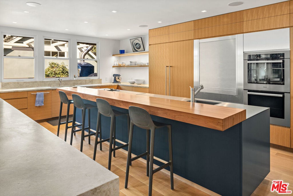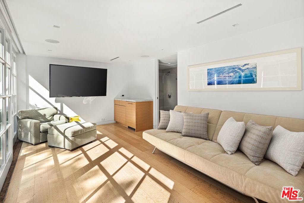 Available June through September: Whether it's spending a few months as a visitor in Santa Monica, adjacent to State Beach, enjoying an adventure while remodeling one's own house or simply experiencing a memorable chapter. Here is your chance to do so. Some houses attract cultural figures who influence contemporaries and future generations. 165 Mabery Road is one of them. Currently owned by a Canadian family who are self-proclaimed modernists, they nevertheless couldn't resist the magnetism of this half-timbered English-style structure when they first saw it. In a testament to their scope, they hired architect Michael Kovac to assist. With Michael's help, and their own exquisite taste, they transformed the interior into a modern sanctuary. The dialogue between the two styles is seamless and memorable. In practical terms the house offers two comfortable main bedroom suites, two home offices, two family rooms, a media room, a gym, and a guest house. The views of the Pacific Ocean and the Canyon are intoxicating. The indoor/outdoor flow from the kitchen to the gardens, the California pool, the outdoor dining, kitchen, and the guest house all embrace the quintessential California lifestyle. Some of the owners and residents included Salka & Berthold Viertel, Daniel Mann, and Gordon Davidson. Through decades, the house hosted many memorable salons and get-togethers. The garage is used as storage and is not included in the lease.