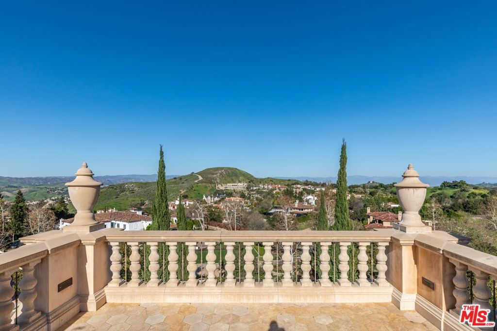 Introducing an Italian Palazzo masterpiece-Commanding what is widely regarded as the most coveted summit within the double guard-gated Estates at The Oaks, Villa Bellezza is a definitive architectural statement offering exceptional value. Conceived by a visionary owner and masterfully realized by internationally celebrated architect William Hablinski, this one-of-a-kind Italianate villa represents the culmination of more than six years of meticulous design and a $20 million investment in uncompromising craftsmanship. Beyond a grand motor court unfolds nearly 16,000 square feet of exquisitely curated interiors, including a rare, fully independent two-bedroom guest villaideal for extended stays, executive hosting, or multigenerational living. The residence is a profound homage to the storied palazzos of Lake Como, where old-world elegance meets the height of California luxury. The interior journey is anchored by a breathtaking 150-foot groin-vaulted gallery hall, leading to a dramatic great room that rises to 28-foot ceilings. Crowned by a custom hand-painted masterpiece and framed by soaring walls of glass, the space captures the surrounding landscape with cinematic precision. Every surface reflects a commitment to permanent elegance: Venetian plaster walls hand-finished by elite European craftsmen; hand-carved travertine tubs and fireplaces; and museum-quality finishes that define every transition and corridor. Designed for both grand-scale hosting and a sophisticated private life, the main level unfolds through a series of impeccably scaled spaces. A formal dining salon and refined library offer quiet gravitas, while the gourmet chef's kitchen, appointed with premier European appliances and curated stoneflows seamlessly into a sunlit breakfast rotunda and a warm family gathering area. Throughout the residence and its exterior loggias, heated flooring ensures a seamless environment of comfort in every season. The upper level serves as a sanctuary of repose, featuring three serene guest suites and an opulent primary retreat. This principal suite is a masterclass in luxury, complete with a Roman-inspired bath, a boutique-caliber dressing room, and a private loggia offering panoramic vistas. The lower level transitions into a world-class leisure experience, housing a French-inspired private cinema and a temperature-controlled 1,100-bottle wine cellar, a professional fitness studio and beauty lounge, and a five-car gallery garage engineered for the serious collector. The estate's exterior, envisioned by renowned landscape architect James Dean, unfolds as a private resort experience. Rolling lawns and a Chanel-inspired pool and spa are framed by a retractable-roof entertaining pavilion and a life-sized chess garden. Expansive viewing decks provide an uninterrupted 360-degree vantage point, creating a setting of rare serenity and grandeur. More than a residence, Villa Bellezza is a triumph of engineering and design, a timeless architectural statement and legacy estate. It stands as a rare opportunity to acquire a property of this magnitude and pedigree.