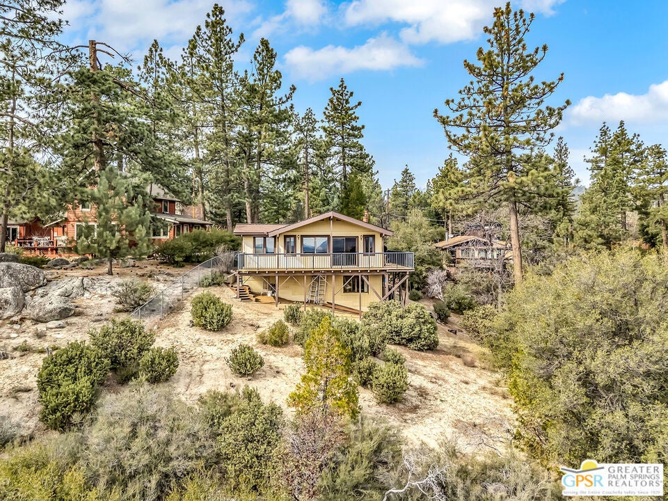 This lovely mountain cabin was built at the very top of the property to maximize the magnificent views of this location. The driveway to the property is at 53453 Double View Rd. for accessibility. As you enter the home, you find a quaint foyer with big windows that display the amazing views. That same feeling and look is found throughout the living space. The open concept living space is enriched with the ambient lighting through those windows and pitched ceilings. 2 nicely-sized bedrooms on this main floor with the master having an ensuite bathroom. Down the spiral staircase is an extra large bonus room that can be used as a game room, extra living space, 3rd bedroom, etc. You will also find a 3/4 bathroom, and laundry area. It has its own access from the outside so the possibiltles are endless. This home is a must see.