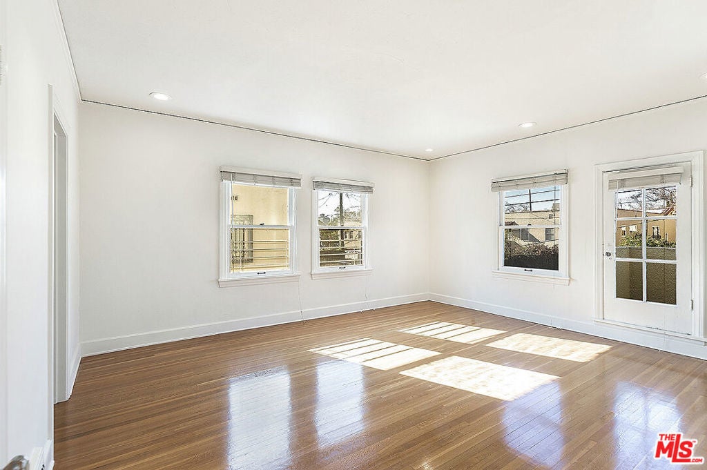 Spacious, charming living in the upper unit of this magnificent Mediterranean duplex in Hancock Park. This unique dwelling features hardwood floors, gleaming natural light, a large living room w decorative fireplace, front balcony overlooking the tree-lined Mansfield Ave, & an office/den with built-in shelves. The dining room w an additional balcony provides easy access to the loaded kitchen which flaunts a built-in eating space, gourmet center island, & stainless steel appliances. Tucked away down the hall are 3 bedrooms, extra closets in hallway, & 2 updated BA. A large jack & jill BA connect the primary BD & the other spacious BD. The 3rd bedroom offers an en-suite BA. Conveniently located off the kitchen is the laundry room filled w lots of cabinetry for storage, W/D hookups (dryer gas) & back door exit/entry. Come view this Hancock Park gem complete with character & tons of space. Note: Bathrooms have been renovated since photos were taken (new floors & shower). Narrow driveway but there is 2 car garage for parking in rear of property. Easy street parking w permit. Furniture seen in photos are from prior listing - unit rented unfurnished only. No Pets. Easy to show!