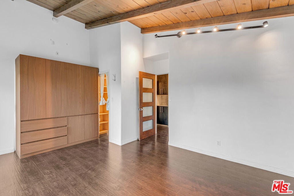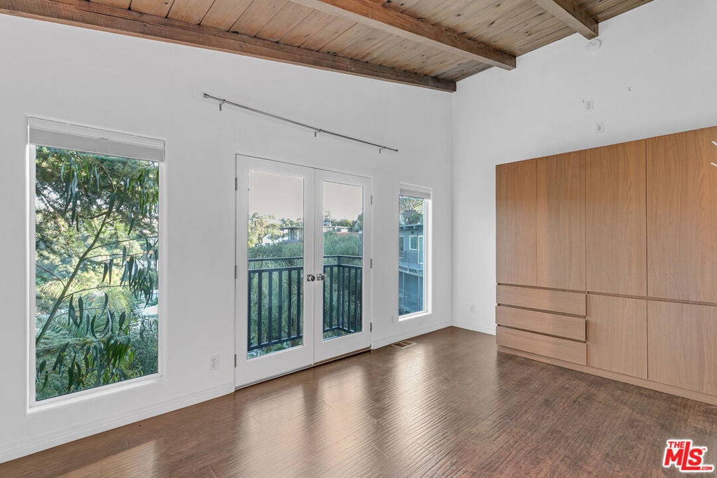 High above the city, tucked into the folds of the Hollywood Hills, 3476 Troy feels cinematic in the best possible way, dramatic, light-filled, and impossibly cool. From the moment you walk in, the vaulted wood-beamed ceilings steal the scene. Warm planks stretch overhead, drawing your eye toward walls of glass that open to an expansive balcony with sweeping green hillside views. It's the kind of living room that makes you want to host a wine night, write a screenplay, or simply sit back and watch the light shift across the canyon. Golden hour here deserves its own score. The open kitchen plays its part beautifully, with rich wood cabinetry, stone countertops, stainless steel appliances, and a generous island that anchors the space. It's equal parts functional and refined, ready for everything from morning espresso to late-night dinner parties that linger long after the credits would normally roll. Three spacious bedrooms offer flexibility for guests, creative space, or a proper home office with a view. The primary suite opens directly to the balcony, inviting in fresh canyon air and soft morning light. The bathrooms are clean and classic, including a spa-worthy shower clad in natural stone that feels both grounded and quietly luxe. An attached private garage adds convenience and extra storage, complete with a washer and dryer tucked inside for easy everyday living. Step outside and you'll find a long, private balcony stretching the length of the home, string lights overhead, a patio heater for cool evenings, and rolling hills that remind you why the Hollywood Hills remain so iconic. And yes, for film lovers, you're just moments from Universal Studios and the legendary house used in Alfred Hitchcock's Psycho. A piece of cinematic history tucked into the neighborhood, dramatic on screen, but here the only suspense is whether you'll snag this lease before someone else does. Elevated, design-forward, and undeniably vibey, this home is ready for its close-up.
