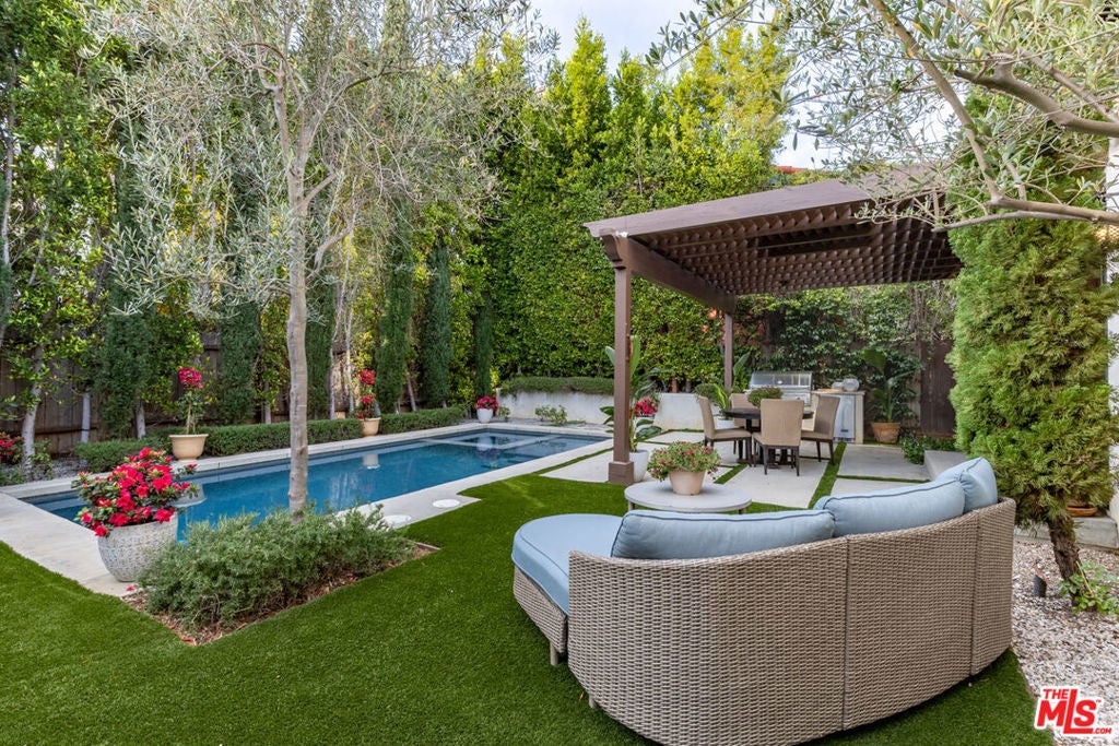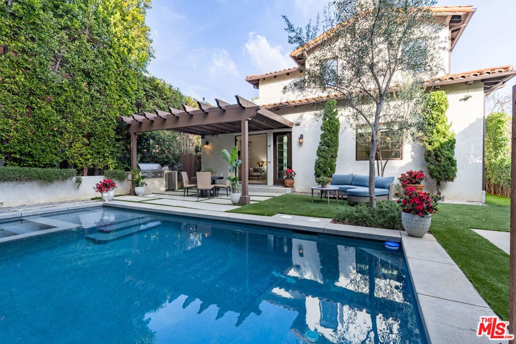Discover the elegance of modern living at 735 North Stanley Avenue, Los Angeles an exquisite Spanish-style residence that artfully combines timeless charm with contemporary luxury. With 3,145 square feet of thoughtfully designed living space, this home features four spacious bedrooms and four-and-a-half lavish bathrooms, offering abundant space for relaxation and entertaining.Step inside to find a formal living room accentuated by a custom fireplace, setting a warm and inviting tone. The chef's kitchen is a culinary dream, complete with custom cabinetry, top-of-the-line stainless steel appliances, and an island perfect for casual dining. The expansive family room seamlessly blends indoor and outdoor living, opening onto a private backyard oasis. Enjoy a heated salt water and spa, complemented by a built-in barbecue ideal for Southern California's al fresco dining. Retreat to the master suite, where luxury abounds with a private balcony, cozy fireplace, and a walk-in closet. The en-suite bathroom is a sanctuary of its own, featuring a soaking tub and dual vanity. Additional highlights include a two-car garage, pristine hardwood floors, and designer light fixtures throughout. Experience the perfect blend of sophistication and comfort at this prime Los Angeles address.