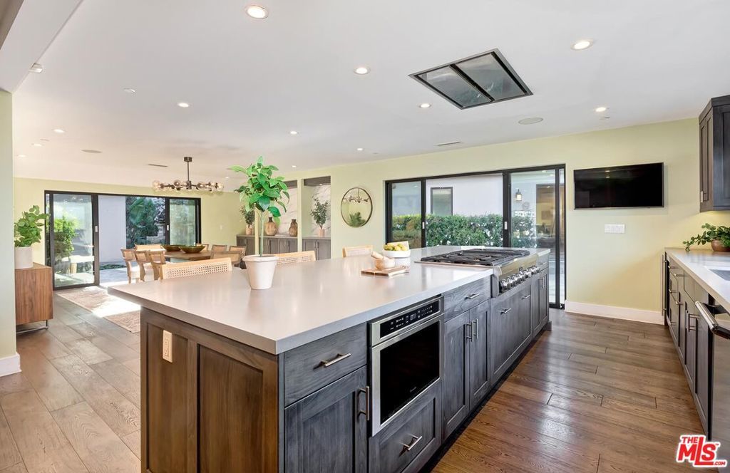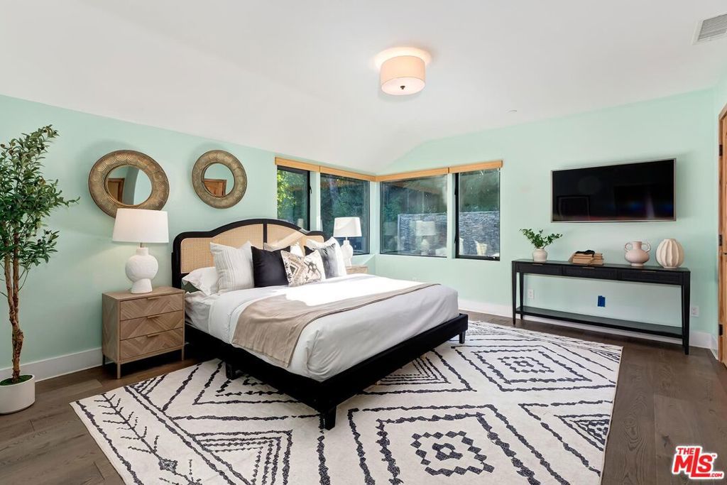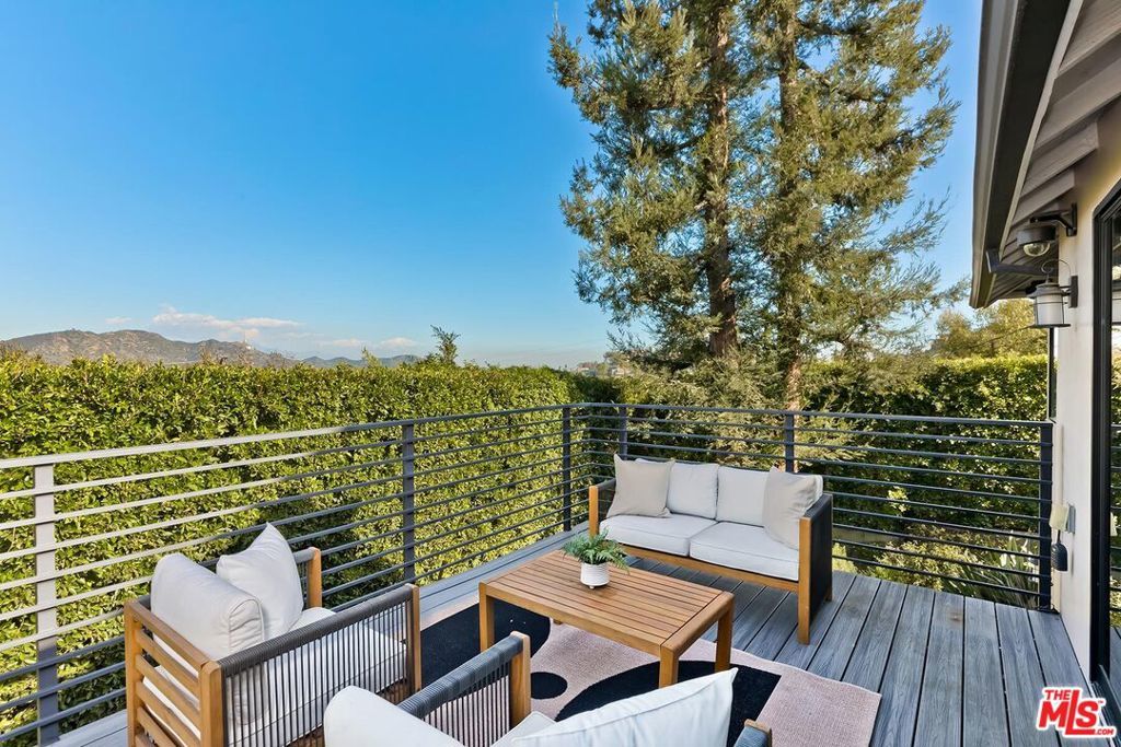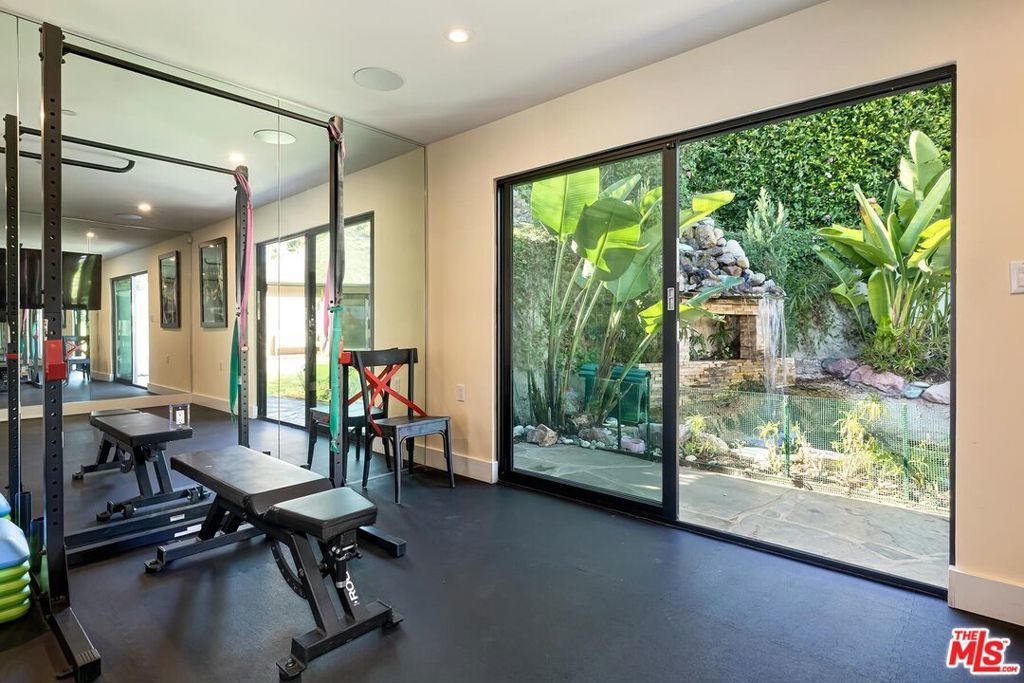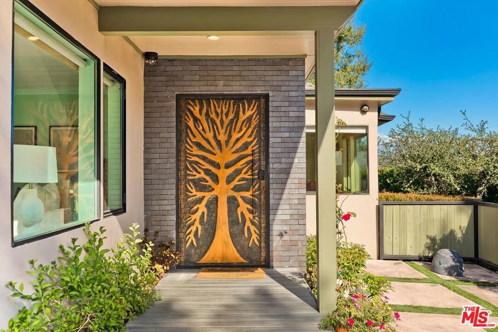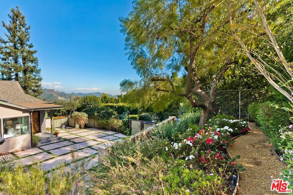Welcome to a private gated home that combines exceptional design with smart home technology, rarely found at this price point. This is easily one of the best values currently offered in the Hollywood Hills. Built from the studs up with fire safety in mind, the home is designed with thoughtful room flow and seamless indoor-outdoor living, featuring beautiful natural light, expansive glass doors, and high-quality wide-plank wood floors.The spacious primary suite includes two closets and a spa-like bathroom with a soaking tub positioned to capture clear views of the Hollywood Sign, the Santa Monica Mountains, and Mount Baldy. Two additional guest bedrooms provide comfortable accommodations, while the detached fourth bedroom with kitchenette and bath is ideal for guests or extended family.Additional highlights include a 480-bottle wine cellar, Dolby Atmos home theater, upgraded gym, bar area, and a detached guest house. A range of tech-forward upgrades includes a Crestron smart home system with iPad controls, remote-controlled blinds, custom garage doors, fully paid solar panels, and a separate guardhouse with its own bathroom and more than 15 security cameras for added privacy and peace of mind.Thoughtful improvements such as earthquake retrofitting, new sewer lines, advanced water filtration, fire-retardant sprinklers, and instant-heat shower systems provide both comfort and efficiency, making this home a smart and secure investment.Entertain effortlessly with a saltwater heated pool, generous fire pit, built-in BBQ, retractable patio sunroof, and a 60-light landscape system that transforms the space at night. The grounds are primarily planted with long-lasting perennials, a major investment that enhances year-round beauty while reducing ongoing plant replacement costs. This hidden gem offers a sanctuary-like setting with layered landscaping, vibrant flowers, and fruit trees including avocado, guava, pomegranate, citrus, and more. The grounds are alive with butterflies, hummingbirds, and natural beauty throughout the year.Three tranquil water features, including a koi and turtle pond, a Buddha fountain, and a lush plant wall, create a peaceful and inspiring outdoor experience. Located just moments from Runyon Canyon's scenic trails and views of the Hollywood Sign, this unique home offers the perfect balance of privacy, convenience, and lifestyle. Luxury, location, and comfort all come together in a rare offering that truly stands out in today's market.