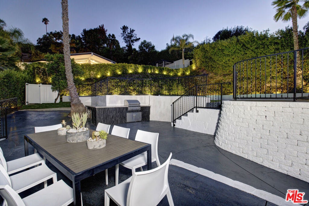 FULLY FURNISHED HOME - Perched high above the street on a generous elevated lot, this beautifully remodeled Studio City home captures sweeping valley views and sparkling city lights. Perfectly situated just moments from Ventura Boulevard's fine dining and boutiques, with easy access to the Westside, this residence offers an exceptional blend of privacy, style, and convenience. Completely remodeled in 2018, the home showcases modern finishes and thoughtful design throughout. The resort-style pool is a true swimmer's pool, enhanced by an advanced AquaLink system that allows you to control the temperature remotely from your phone. The surrounding outdoor spaces are ideal for entertaining, featuring a built-in barbecue, spacious patios, and total privacy amid lush, mature landscaping. Solar panels off are owned. The chef's kitchen is both functional and elegant, highlighted by a large center island, Thermador stainless-steel appliances, and sleek custom cabinetry. The open living area features a striking European stone fireplace and seamless indoor-outdoor flow to a front deck perfect for morning coffee or evening sunsets. Offering five en-suite bedrooms and five bathrooms, the home includes a lower-level Bedroom suite and bathroom with a private entrance, currently used as an artistic music studio ideal for guests, a home office, or creative workspace. A three-car garage with soaring ceilings provides ample parking and potential RV space, while a dumbwaiter offers direct access to the kitchen level for convenience.The grounds are adorned with pomegranate, citrus, and hibiscus trees, creating a tranquil setting that complements the home's refined ambiance. Move-in ready and meticulously maintained, this hillside residence embodies the best of Studio City living - luxurious, private, and close to everything. This Property is also listed for Sale.