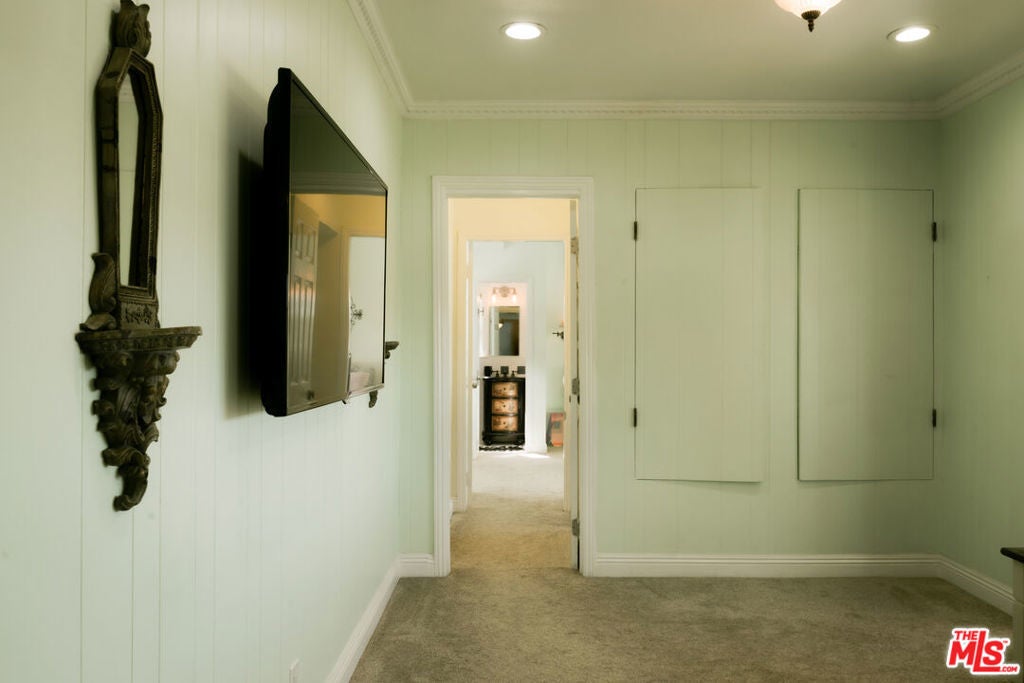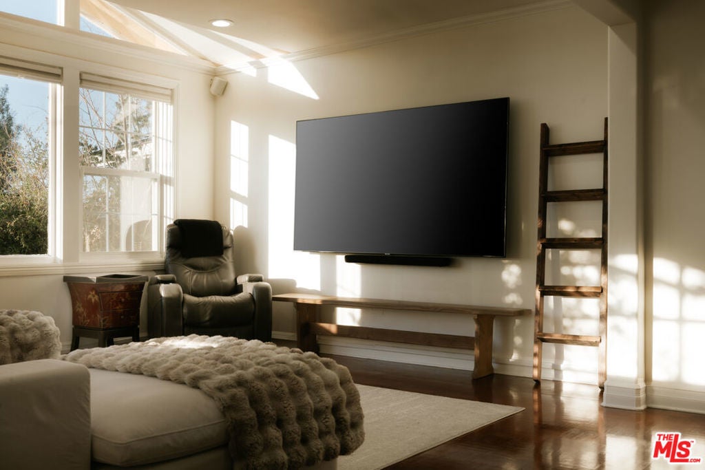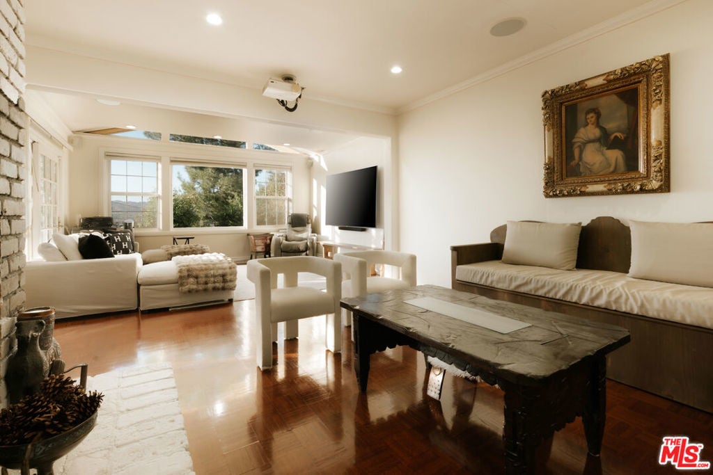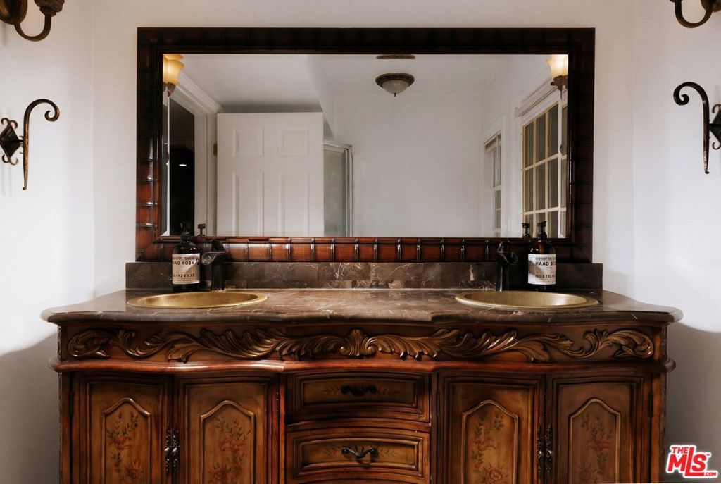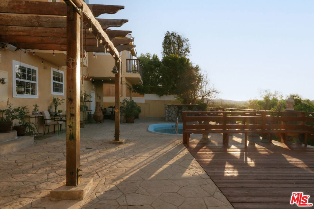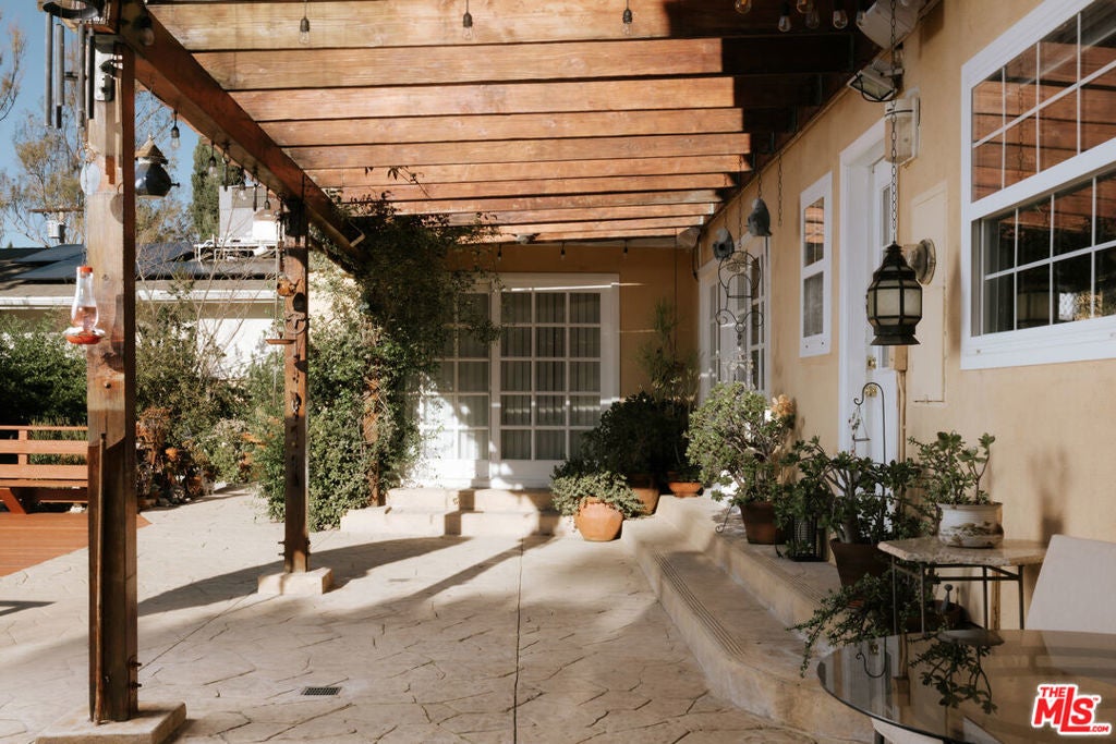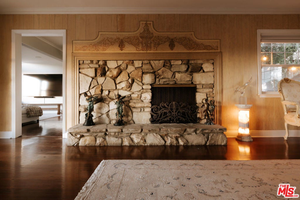 Location, views, and charm! Positioned at the end of a quiet cul-de-sac above the valley, 5741 Rolling Road captures sweeping panoramic city and hillside views, with natural light from sunrise to sunset. Inside, two spacious living rooms each feature their own fireplace, creating distinct yet inviting spaces to relax or gather. A formal dining room offers the perfect setting for both intimate dinners and larger celebrations. French doors and preserved vintage details bring warmth and character throughout. Mounted and in-wall speakers paired with a projector enhance the living room, making it ideal for movie nights and entertaining. Original hardwood floors run throughout the home. The kitchen features rich wood cabinetry, black granite countertops, stainless steel appliances, and generous storage to support both daily living and entertaining. A full bathroom with double sinks, a walk-in shower, and direct backyard access completes the main level. All bedrooms are located on the upper level, each capturing sweeping valley views. Two separate staircases create a layout that enhances privacy and easy flow throughout the home. The expansive primary bedroom includes an ensuite bath, walk-in closet, and a cozy balcony, perfect for enjoying the sunset. A secondary bedroom, accessed directly from the second staircase, functions like its own private suite with an ensuite bath and walk-in closet. It works well for guests, extended family, or a dedicated office. Additional bedrooms complete the second floor, each with scenic views. The backyard unfolds across multiple terraced levels designed for relaxation and recreation. The expansive main deck features an oversized jacuzzi and high-top bar, ideal for entertaining or enjoying sunsets. Steps lead to a second outlook deck and garden, then continue down to a third flat level that offers space for a sport court, playground, or other outdoor uses tailored to your needs. The garden includes olive, orange, lemon, pomegranate, mandarin, and apple trees. An outdoor shower adds convenience after enjoying the spa or yard. Recent upgrades include HVAC system, new water heater, electrical improvements, copper plumbing, a security system with cameras, and replaced garage door and motor. Residents enjoy easy access to Westfield Topanga and The Village at Westfield Topanga for shopping and dining, with the beach just a short drive away. The upcoming Rams Village development reflects continued investment in the area and supports the neighborhood's long-term growth.
