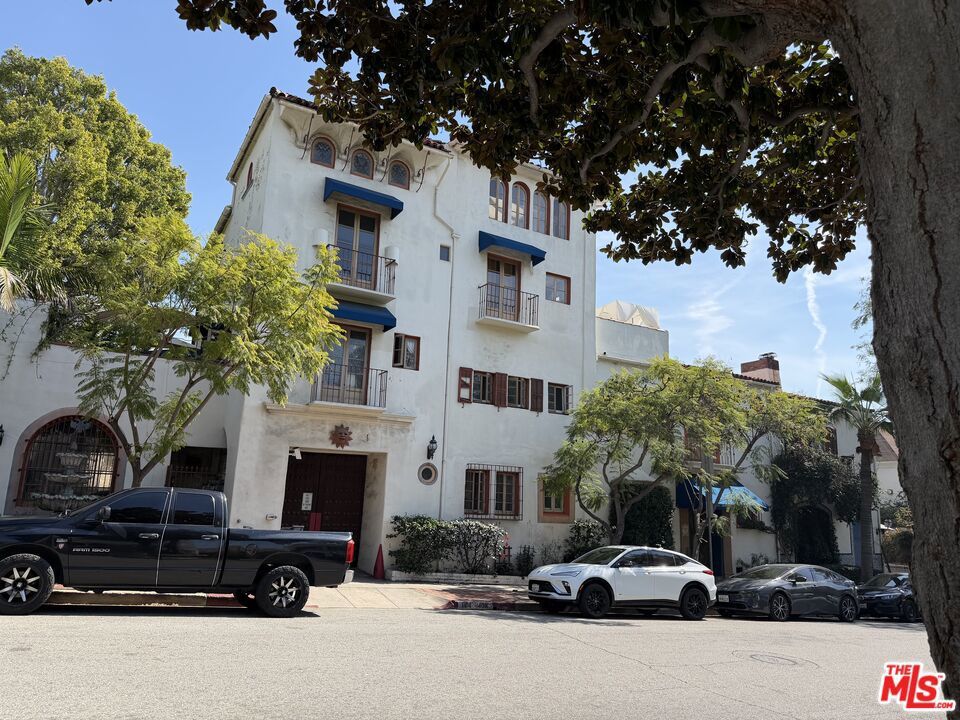 Enjoy relaxing by the pool at this classic mid-century building on one of the best tree lined streets in West Hollywood. This top floor corner unit is located in the rear of the building and has a newer kitchen, gleaming hardwood floors, custom recessed lighting, laundry inside, air conditioning, 2 nicely updated baths and your own spacious balcony for relaxing. Parking for one car plus additional storage is included. This prime location is within the City of West Hollywood courtyard historic district adjacent to everything the Sunset Strip area has to offer. Steps to iconic buildings like Colonial House, Mi Casa, The Andalusia, Chateau Marmont, as well as shopping, movies and dining.