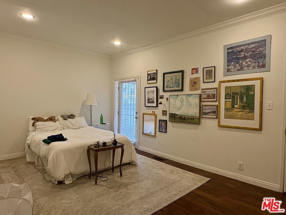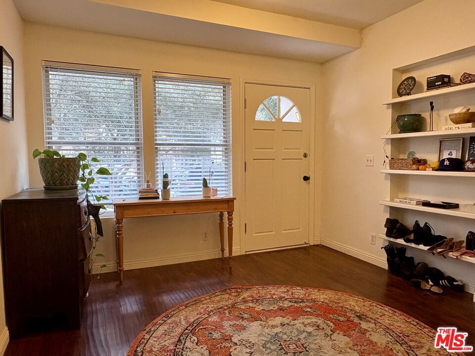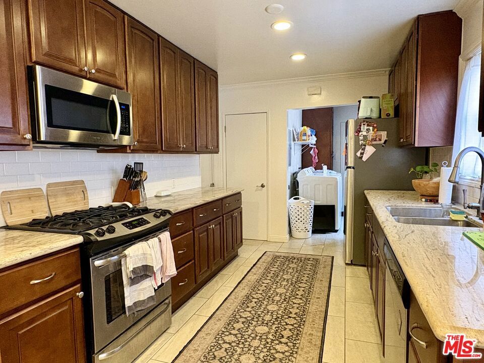 This bright and airy home offers spacious formal living and dining rooms, 4 generously sized bedrooms, and 2 tastefully renovated bathrooms. The versatile fourth bedroom features direct outdoor access, making it ideal as a family room, guest suite, or home office. The gourmet kitchen features stainless steel appliances, granite countertops, abundant cabinetry, and a charming breakfast nook, a comfortable and functional space for daily living. Additional highlights include a separate laundry room with washer and dryer, hardwood floors throughout, excellent closet space, central A/C, and two dedicated parking spots. Ideally located near The Grove, top shopping and dining, boasting an impressive Walk Score of 86, this home offers the perfect blend of comfort, style, and convenience.