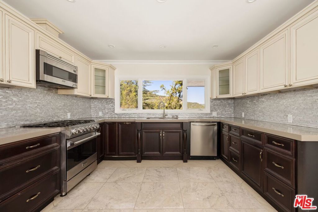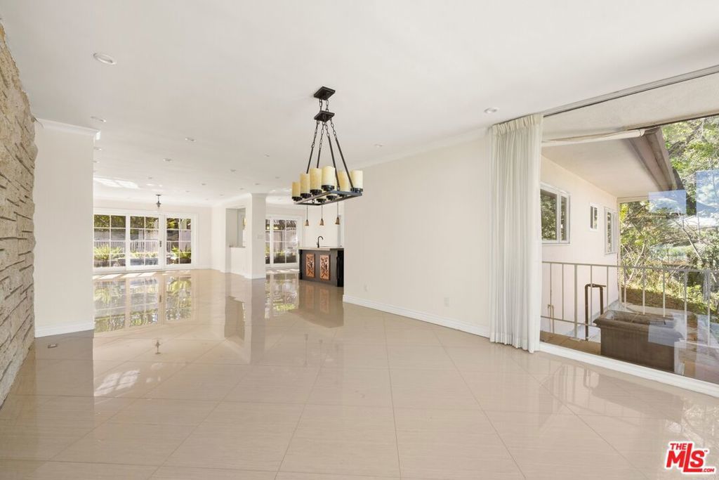 Perched at the top of Bel Air, 1743 Stone Canyon is a serene retreat surrounded by nature, light, and breathtaking views of the reservoir and canyon beyond. This private residence is thoughtfully designed to embrace its tranquil setting, with expansive windows and seamless indoor-outdoor flow that flood the home with natural light throughout the day. A graceful arrival leads into warm, open living spaces that connect effortlessly to multiple outdoor entertaining areas. The resort-style backyard features a sparkling pool with waterfall accents, lush landscaping, and sun-drenched patios perfect for quiet mornings or lively gatherings. A central courtyard with a fire feature adds an intimate focal point, ideal for evenings under the stars. The home's layout offers exceptional privacy, with the primary suite set apart in its own wing, creating a true sanctuary separate from the additional bedrooms. An open chef's kitchen, with breakfast bar and breakfast room open to the spacious living room with floor to ceiling windows. Additional rooms include the cocktail room and dining room, perfect for entertaining. This restful retreat enjoys peaceful views and a sense of seclusion, while the opposite wing comfortably accommodates family or guests. Surrounded by mature trees and greenery, the property feels worlds away yet remains moments from the best of the city. Elevated, quiet, and immersed in nature, this Bel Air residence offers a rare combination of privacy, light, and timeless California living and is located just moments from the coveted Hotel Bel Air.