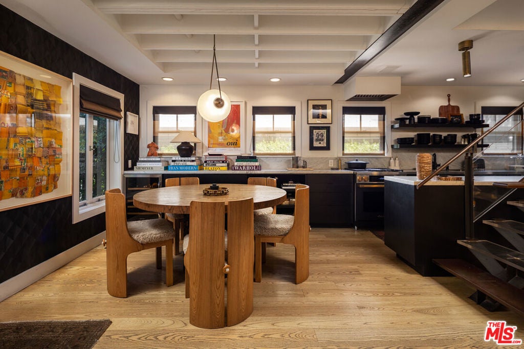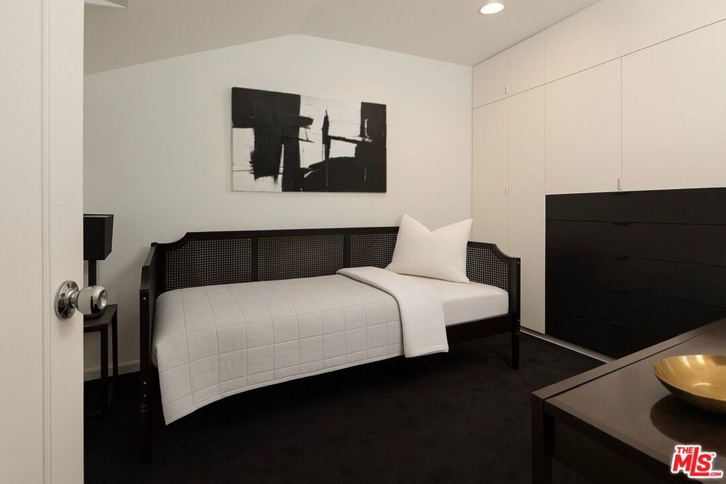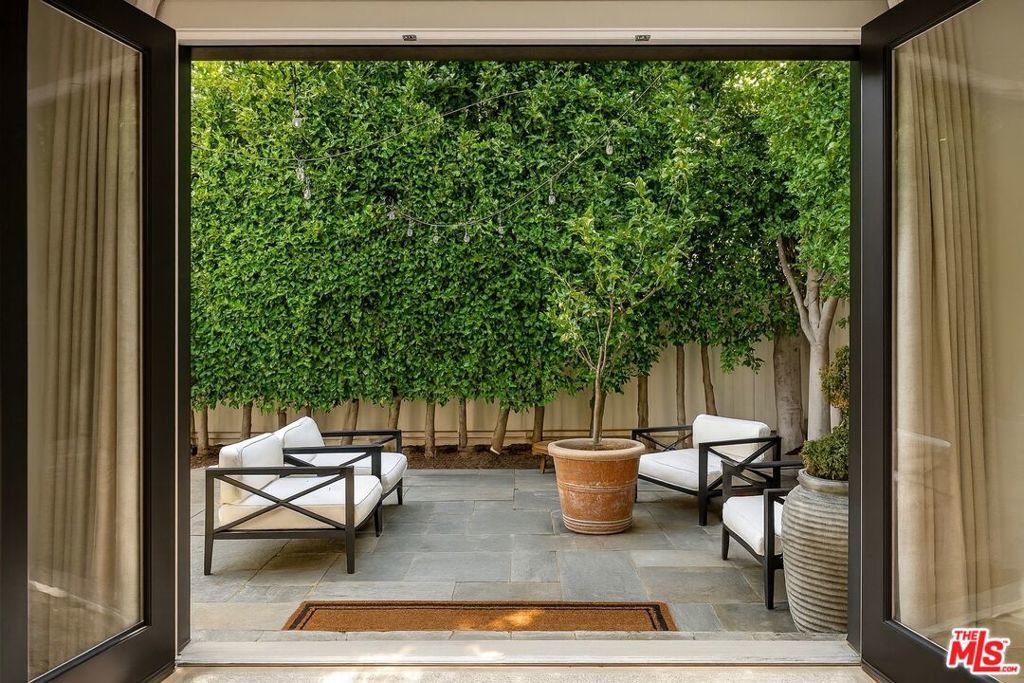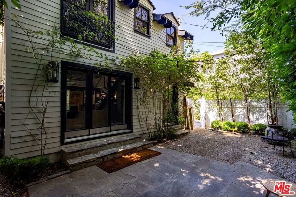Designer done by AD100 honoree Ryan Saghian, this gated 2-bedroom, 2.5-bath residence is tucked behind lush greenery that evokes the charm of a European retreat while offering a contemporary lifestyle in West Hollywood's Melrose Design District.Inside, Saghian's signature vision unfolds across a dramatic open plan where bold architectural details and impeccable finishes set the tone. The living room, anchored by a sleek fireplace with steel-framed glass doors, opens seamlessly to the private garden, creating the ultimate indoor-outdoor flow. A sculptural staircase of glass and steel ascends with gallery-like precision, while designer lighting highlights the layered textures and bespoke furnishings.The kitchen is a study in modern elegance, featuring marble countertops, custom cabinetry, and professional-grade appliances with brass accents, every detail a statement of artistry and function. Upstairs, the primary suite is a private sanctuary with luxuriously appointed bath, while a secondary bedroom offers versatility for guests or a chic office.A rare opportunity to live in a space infused with the DNA of one of Los Angeles' most sought-after talents. Where every space tells a story, every detail has meaning, and every moment is elevated.