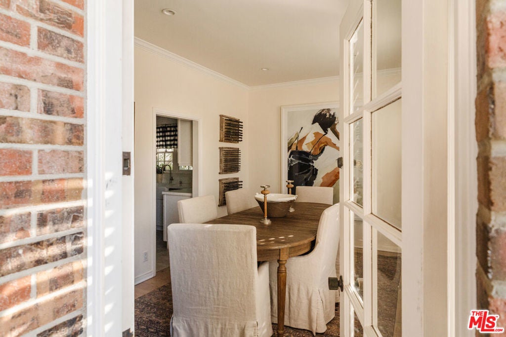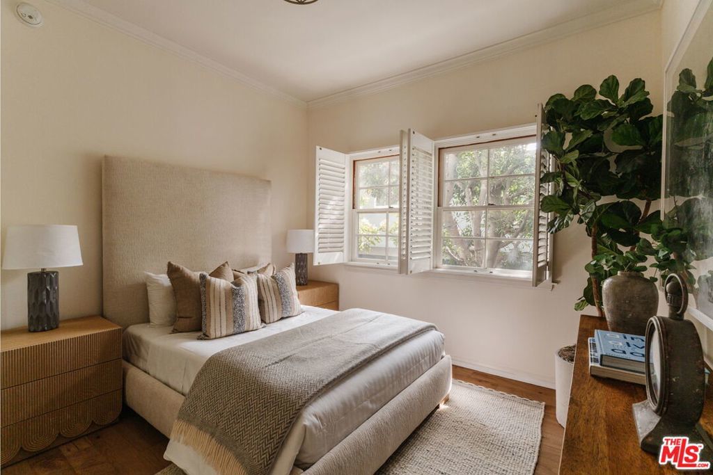 Experience elevated Brentwood living in this beautifully renovated, front-facing 2-bedroom, 2-bath residence, ideally situated in an intimate 9-unit building. Positioned with a desirable west-facing exposure, the home is filled with natural light and offers a serene, tree-lined outlook.A formal entry opens to a spacious, open-concept living and dining area defined by soaring ceilings, recently refinished wide-plank wood flooring, and a statement fireplace. Oversized glass door leads to a generous private balcony, creating a seamless indoor-outdoor flow ideal for both relaxed everyday living and effortless entertaining. Thoughtfully curated finishes and soft, layered textures evoke a timeless, understated elegance reminiscent of a classic Nancy Meyers aesthetic. The chef's kitchen is both refined and functional, featuring premium stainless steel appliances, custom cabinetry, and sleek quartz countertops, with open shelving that adds warmth and character.The expansive primary suite offers a true retreat, complete with a large walk-in closet and a spa-inspired bath with dual vanities and a frameless glass shower. A well-appointed secondary bedroom and full bath with tub provide flexibility for guests, office, or additional living space. Additional highlights include side-by-side parking in a gated garage and a boutique building setting that offers both privacy and exclusivity. Located moments from Brentwood's premier dining, shopping, and neighborhood parks, this residence delivers a rare blend of style, comfort, and walkable convenience in one of Los Angeles' most sought-after communities.