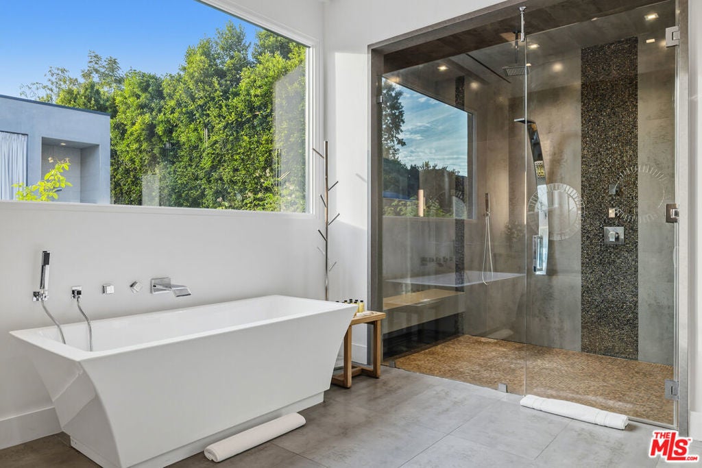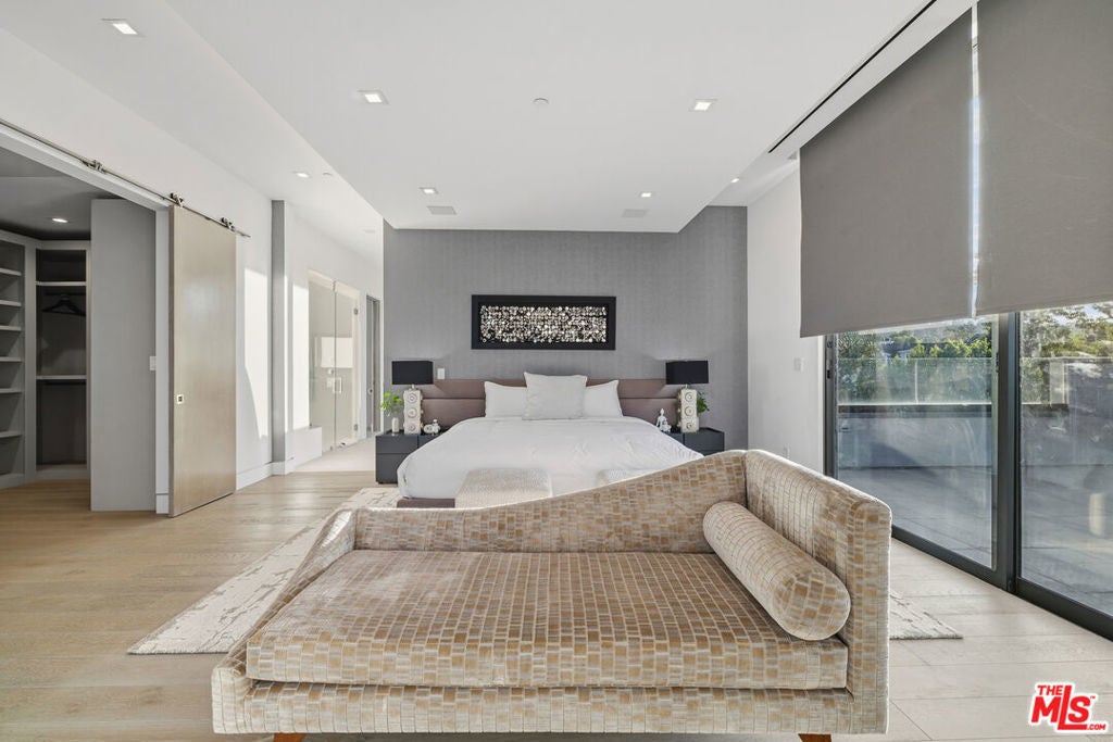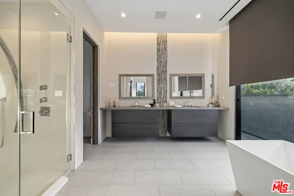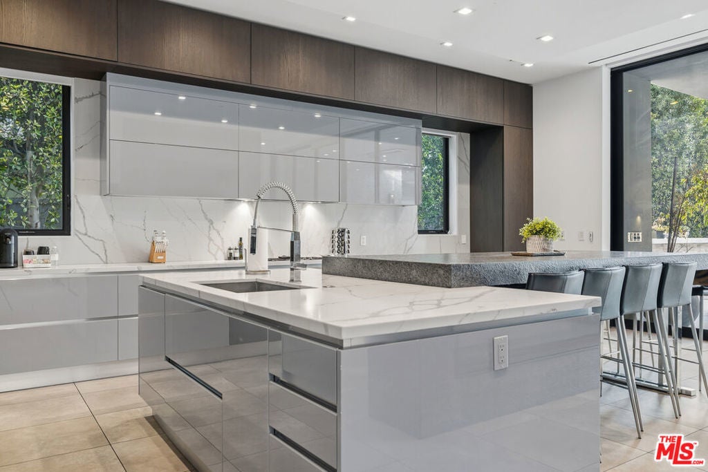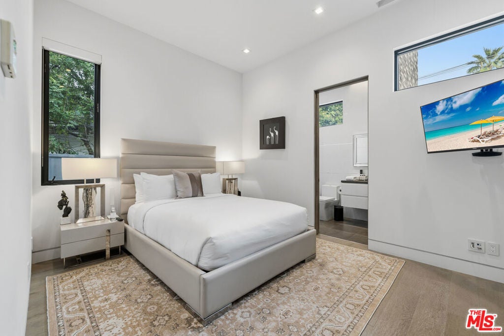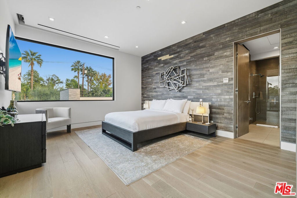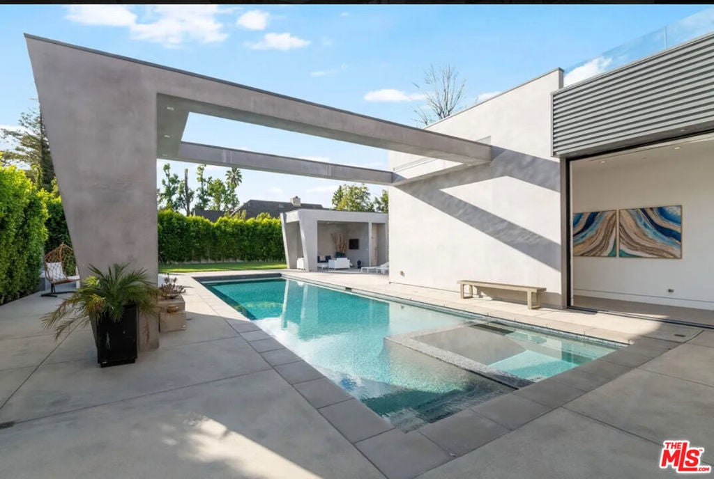 Welcome to this Stunning Property Behind Secure gates in the Heart of Tarzana. This Home was Built in 2018 and has Extremely High End Finishes Throughout. Hardwood Floors, Floor to Ceiling Wine Display, Custom Shades on a Remote in Each Room. Large Island and Big Dining Room, Great for Entertaining. This home Features Two Bedrooms Downstairs and Three Bedrooms Upstairs. All Bedrooms have their own Ensuite Bathroom. Glass Sliding Doors that are Floor to Ceiling, Sitting Area Upstairs and Outdoor Sitting Area Upstairs and off Primary Suite. Lots of Natural Light and Privacy. Property also features a Beautiful Heated Pool, Built in Cabana, and BBQ with a very Large Area of Grass to play and Entertain. Home also features 3 Car Garage, One Single Garage is currently used as a Gym. Driveway large enough to hold 10 cars, Solar Panels for low utility bills, Extensive Cameras and Security. Property Available for Short Term and/or Long Term Lease and Furnished or Unfurnished. This is a One of a Kind Property, not to be Missed.