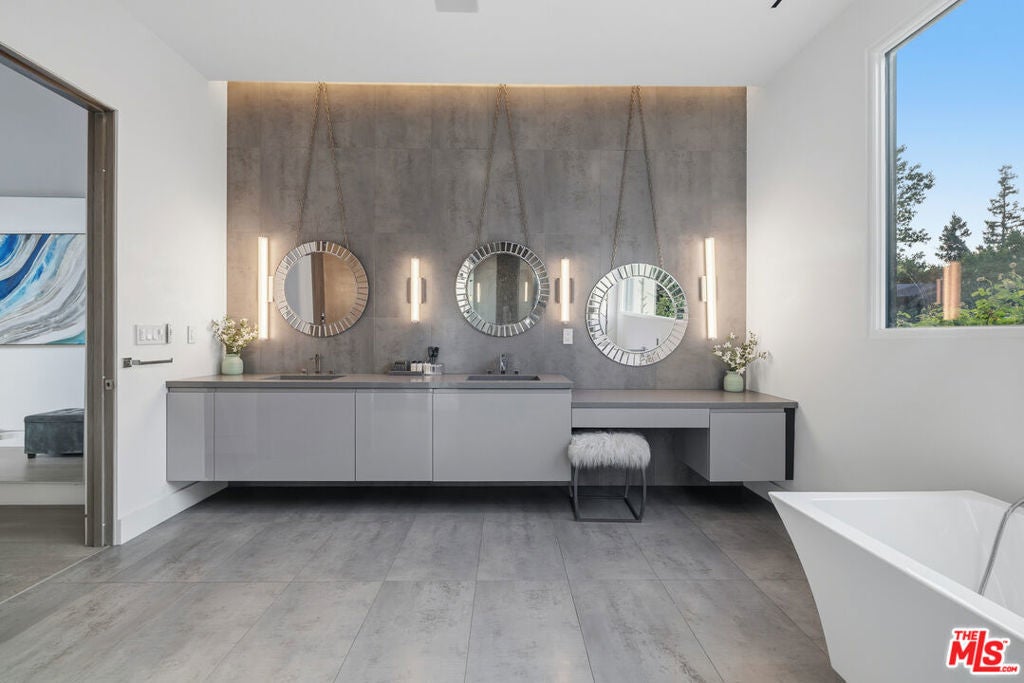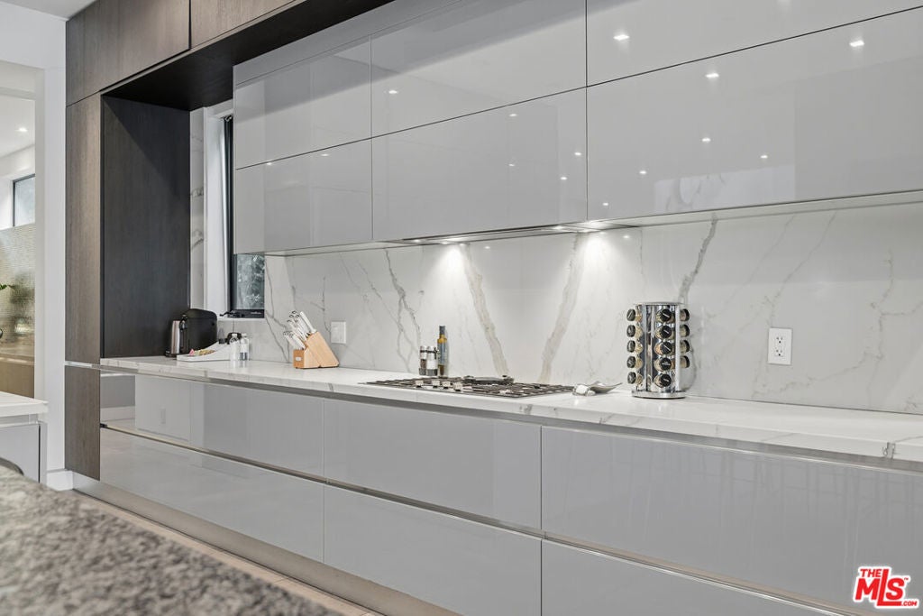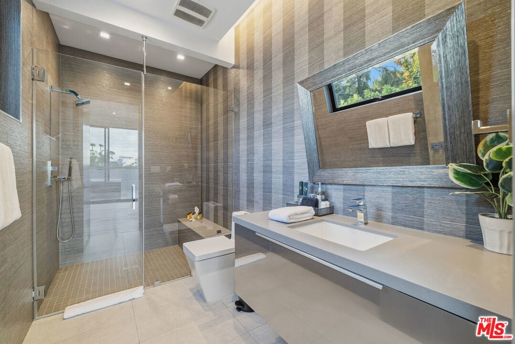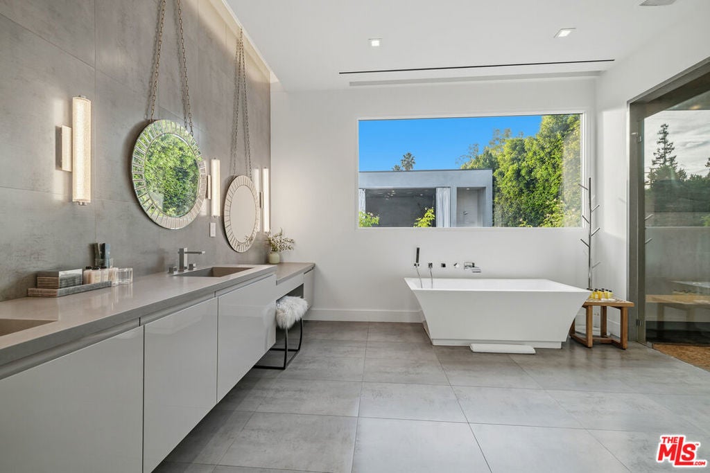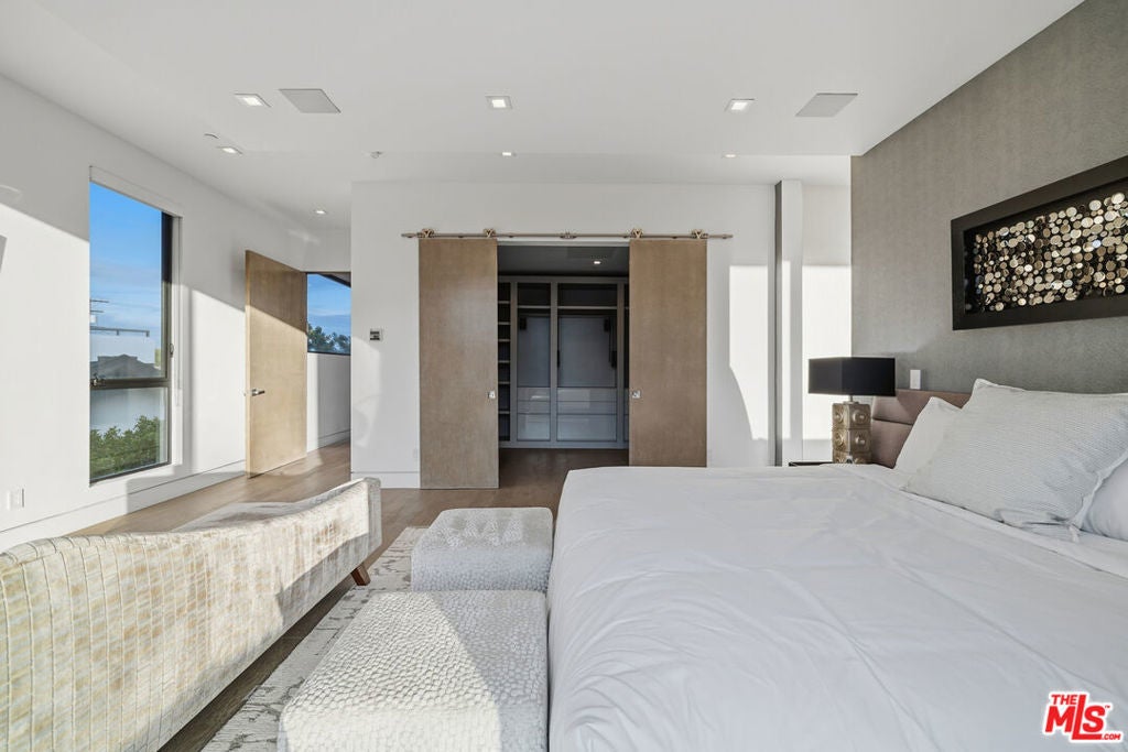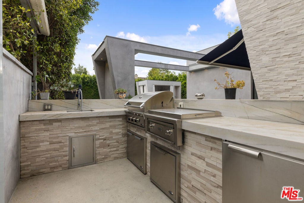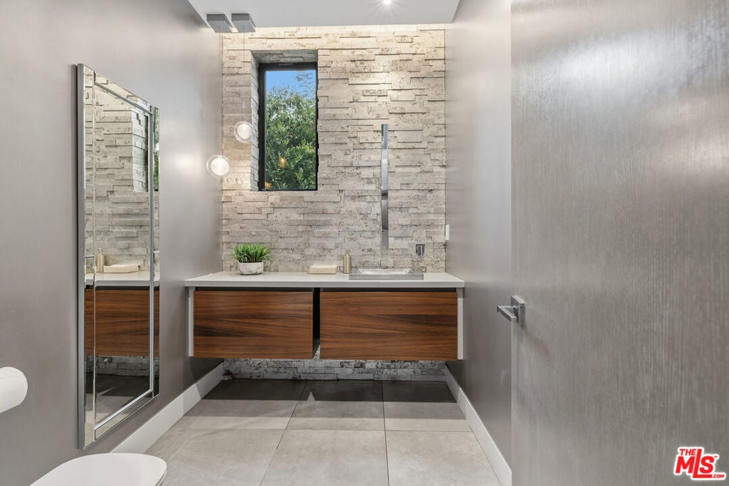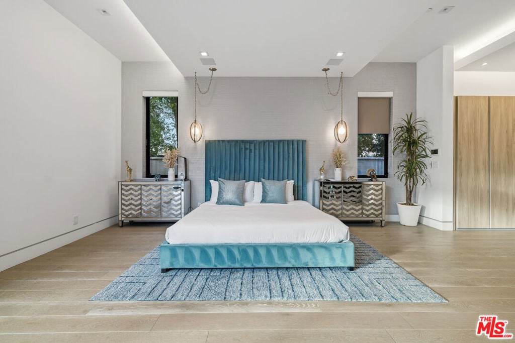 Welcome to this Stunning Property Behind Secure gates in the Heart of Tarzana. This Home was Built in 2018 and has Extremely High End Finishes Throughout. Hardwood Floors, Floor to Ceiling Wine Display, Custom Shades on a Remote in Each Room. Large Island and Big Dining Room, Great for Entertaining. This home Features Two Bedrooms Downstairs and Three Bedrooms Upstairs. All Bedrooms have their own Ensuite Bathroom. Glass Sliding Doors that are Floor to Ceiling, Sitting Area Upstairs and Outdoor Sitting Area Upstairs and off Primary Suite. Lots of Natural Light and Privacy. Property also features a Beautiful Heated Pool, Built in Cabana, and BBQ with a very Large Area of Grass to play and Entertain. Home also features 3 Car Garage, One Single Garage is currently used as a Gym. Driveway large enough to hold 10 cars, Solar Panels for low utility bills, Extensive Cameras and Security. Property Available for Short Term and/or Long Term Lease and Furnished or Unfurnished. This is a One of a Kind Property, not to be Missed.