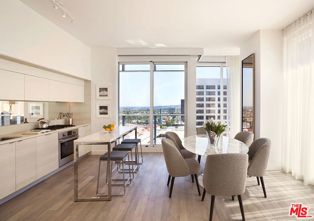 Combining advanced, leading-edge technology with timeless white-glove service provided by a house staff of 80, Ten Thousand offers the perfect home or piede-a-terre. Conveniently located at edge of Beverly Hills and Century City. The unit offers an en-suite bathroom and guest restroom, private balconies accessible via double sliding glass doors-Hardwood six-inch-wide plank floors. The kitchen offers custom Italian cabinetry, quartz countertops and mirrored backsplashes and are equipped with Bosch appliances and a Thermador refrigerator with an integrated cabinet front, and a front-loading Asko washer and dryer. Designed and constructed to condominium-caliber standards, Ten Thousand offers residents the freedoms and conveniences of leasing within a thoughtfully programmed living environment amidst 75,000 SF of amenities including indoor and outdoor pools, a 1-acre park, full bar, complimentary daily breakfast.