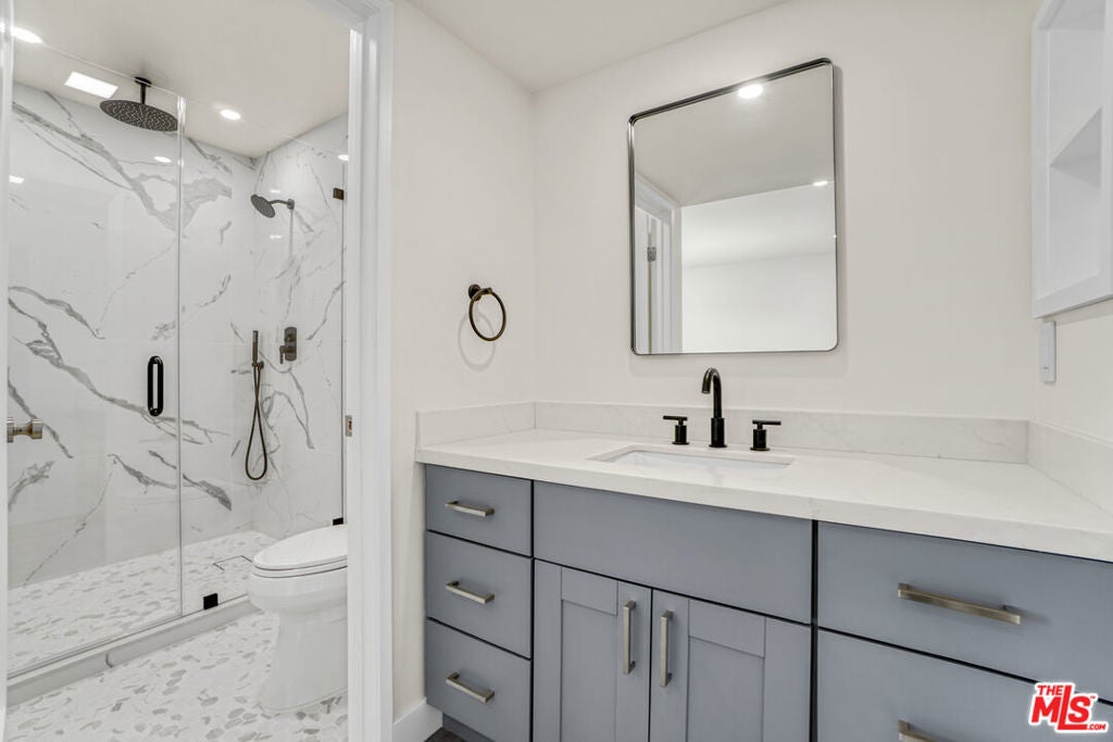 Welcome to the highly desirable Suntree community in Tarzana. This beautifully remodeled 3-bedroom, 2.5-bath corner townhome offers exceptional privacy, abundant natural light, and a thoughtfully designed layout. Situated on the top level, this bright and airy residence features Pergo waterproof flooring throughout, new windows, recessed lighting, and a modern neutral color scheme that creates a warm, inviting feel. The updated kitchen showcases white cabinetry, quartz countertops, and stainless steel appliances blending style and functionality seamlessly. The inviting step-down living room is highlighted by a decorative fireplace and private balcony, while the separate step-down dining area provides the perfect setting for entertaining. A convenient powder room completes the main level. Upstairs, you'll find two spacious guest bedrooms, a tastefully remodeled full bath with a double-sink vanity, and full-size side-by-side washer and dryer hook-ups for added convenience. The primary suite offers a walk-in closet and a large bath, finished with porcelain walls and Marble counters. Additional features include a detached two-car garage located just across the pathway. The Suntree complex is beautifully maintained and centrally located, offering comfort, privacy, and convenience in one of Tarzana's most sought-after communities.