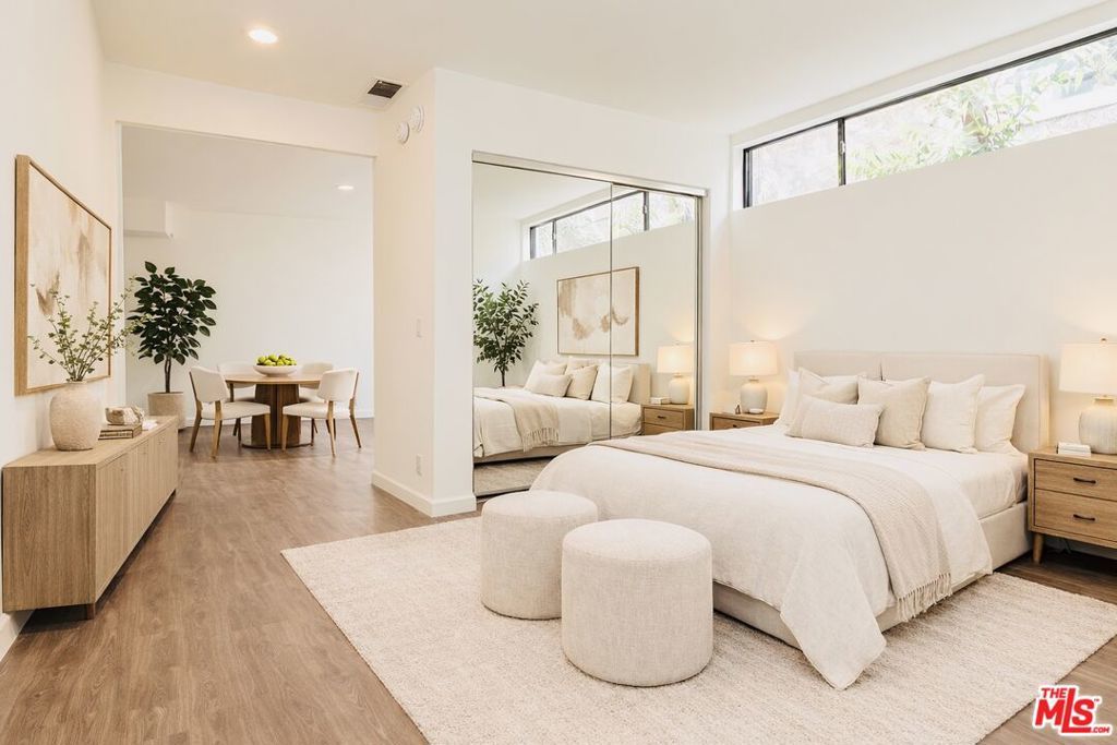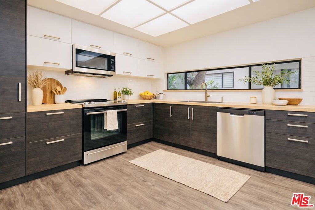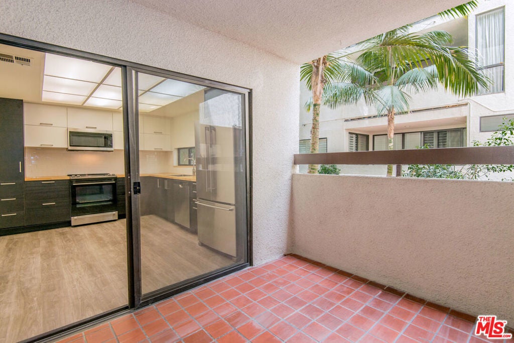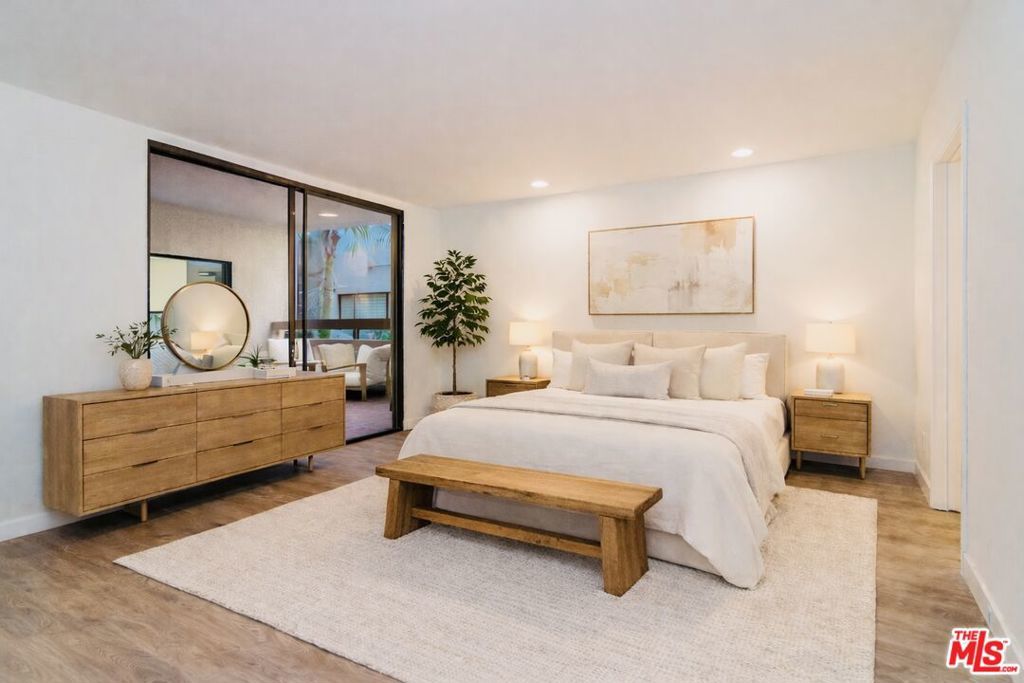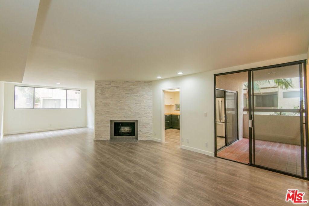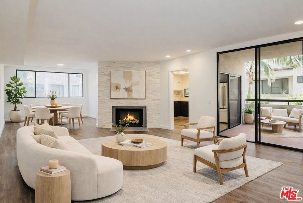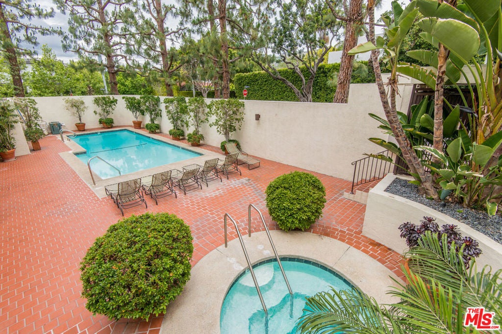 Located in the coveted Mid-Century inspired Kenneth Dillion A.I.A.-designed complex in the heart of prime West Hollywood's Melrose Design District, this remodeled first-floor rear unit faces the center courtyard, offering a quiet and private setting. This spacious single-level condo features a living room with gas fireplace, formal dining area, and a den with a closet that can be used as a second bedroom. The generous primary suite includes a large walk-in closet and en-suite bath, while a central terrace provides access to the living room, primary bedroom, and kitchen area. The updated kitchen is equipped with laminate floors, butcher block counters, stainless steel appliances and windows overlooking the tranquil courtyard. Amenities include a pool and spa surrounded by lush landscaping and mature trees. Updated common areas and low HOA dues for the area. Ideally situated just behind Melrose Place, this property is nestled in a prime neighborhood bordered by La Cienega Blvd, Melrose Ave and Santa Monica Blvd, and is surrounded by an exceptional selection of boutiques, dining and local amenities. Some images are virtually staged.