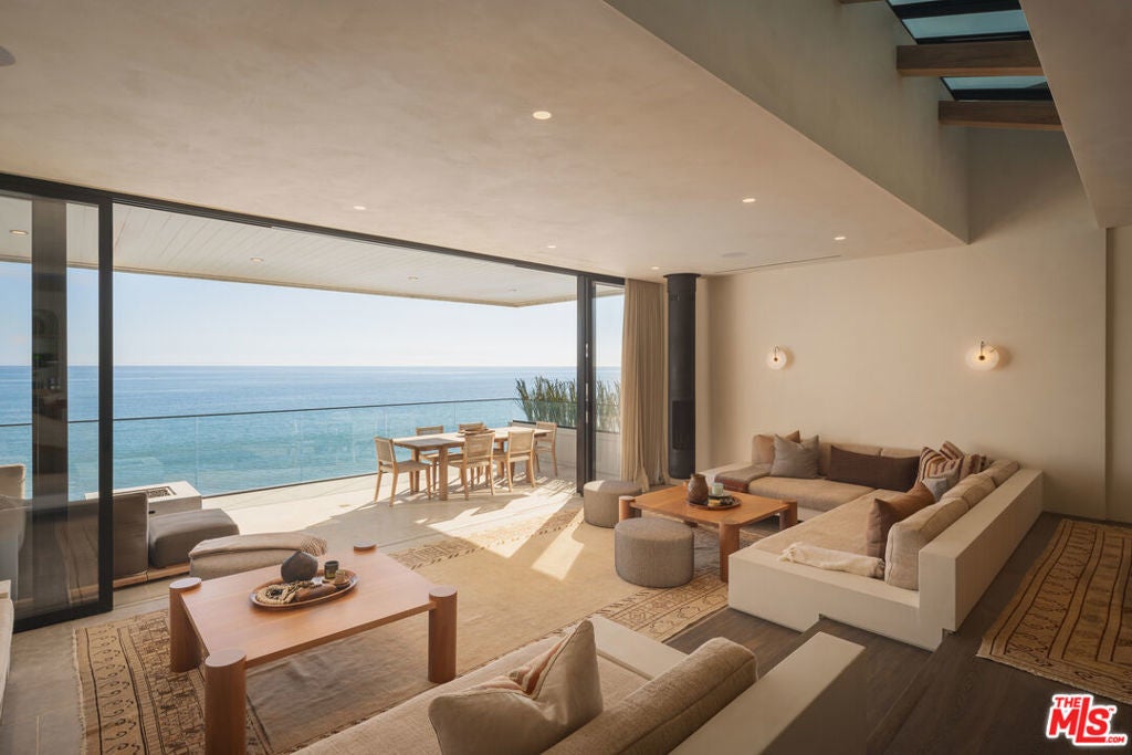 Perfectly positioned on Carbon Beach between Nobu and the Malibu Pier, this fully remodeled oceanfront residence offers a rare blend of striking design and complete privacy. A gated entry and secure parking introduce the home, where seamless indoor-outdoor living defines the coastal experience. Soaring skylights, a dramatic step-down living room with fireplace, and an expansive wall of glass open to a tile-clad balcony overlooking the sand and ocean beyond. Every detail has been thoughtfully curated with exceptional finishes and a clean, modern aesthetic that embodies sophisticated Malibu living. Ideal for entertaining, the property also offers an additional eight guest parking spaces, an uncommon luxury on the sand.