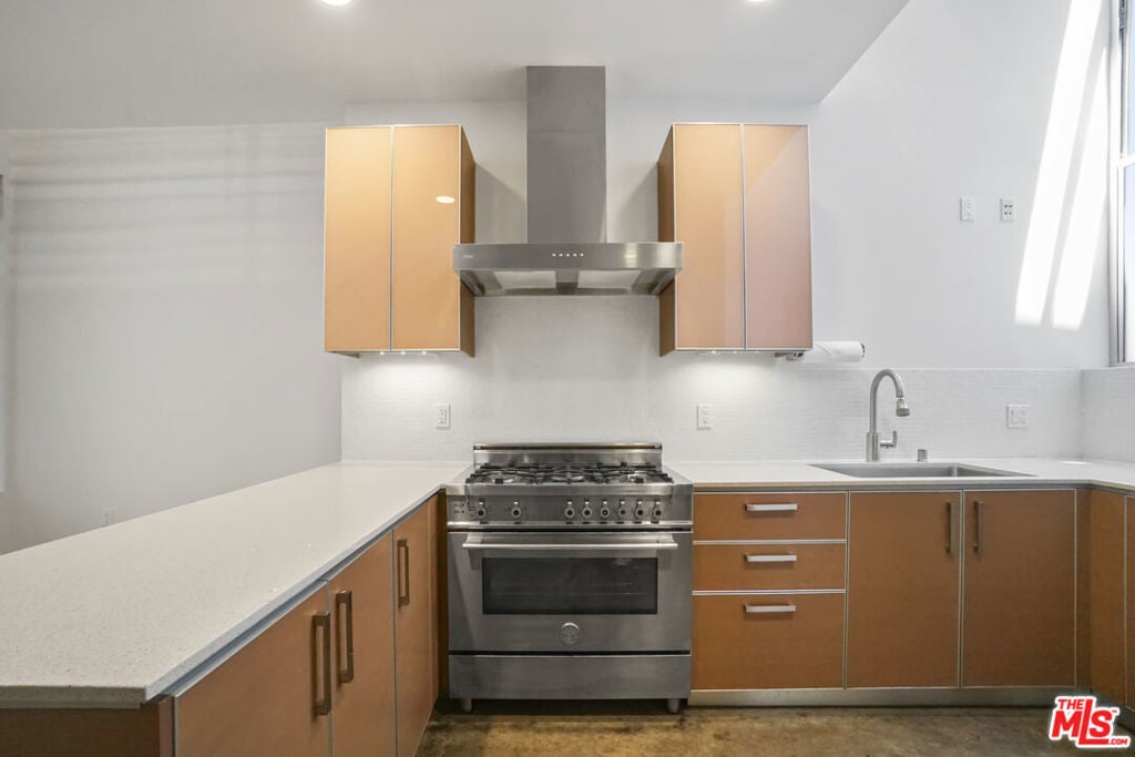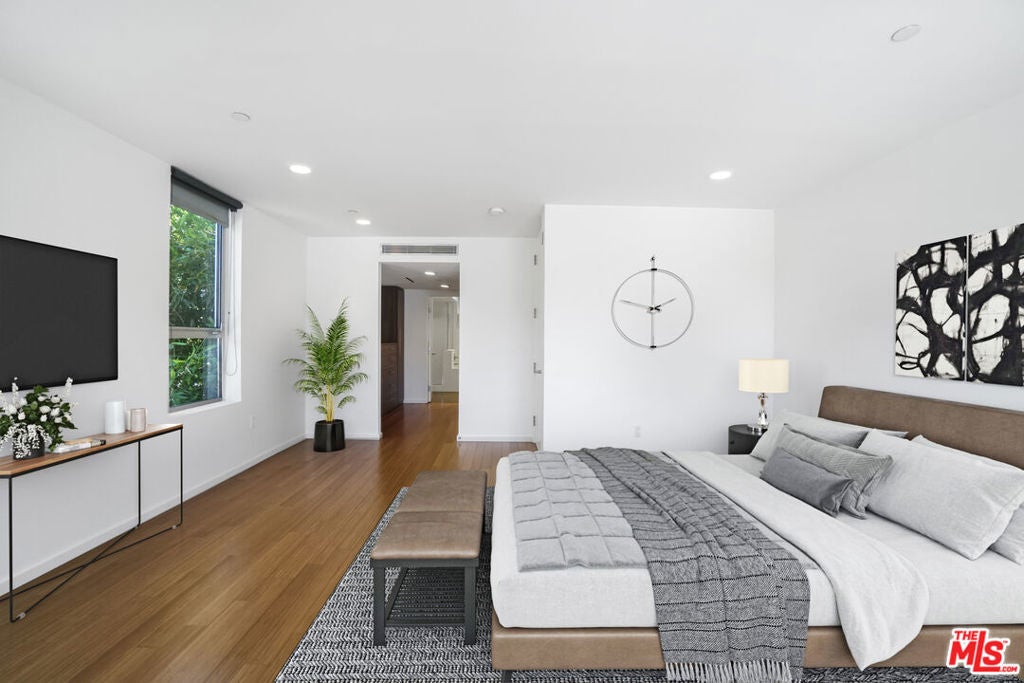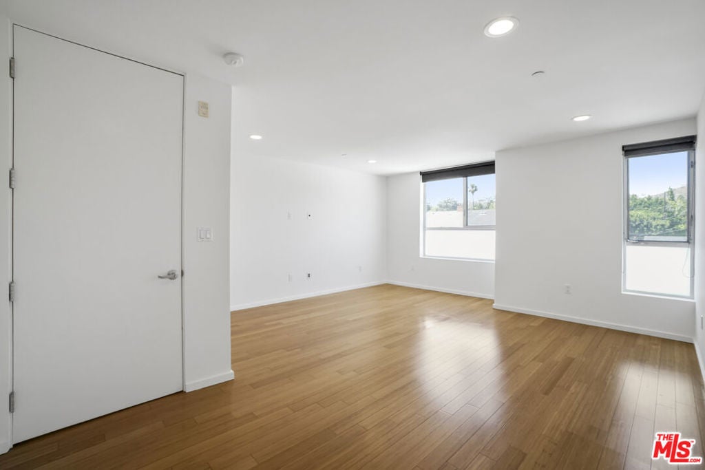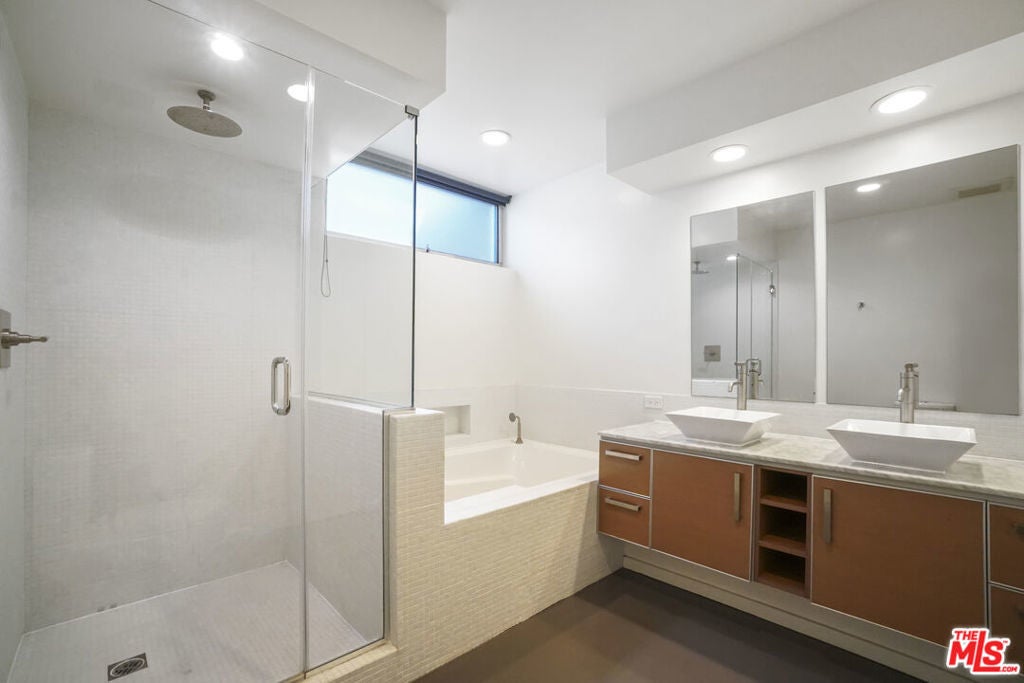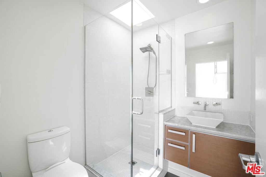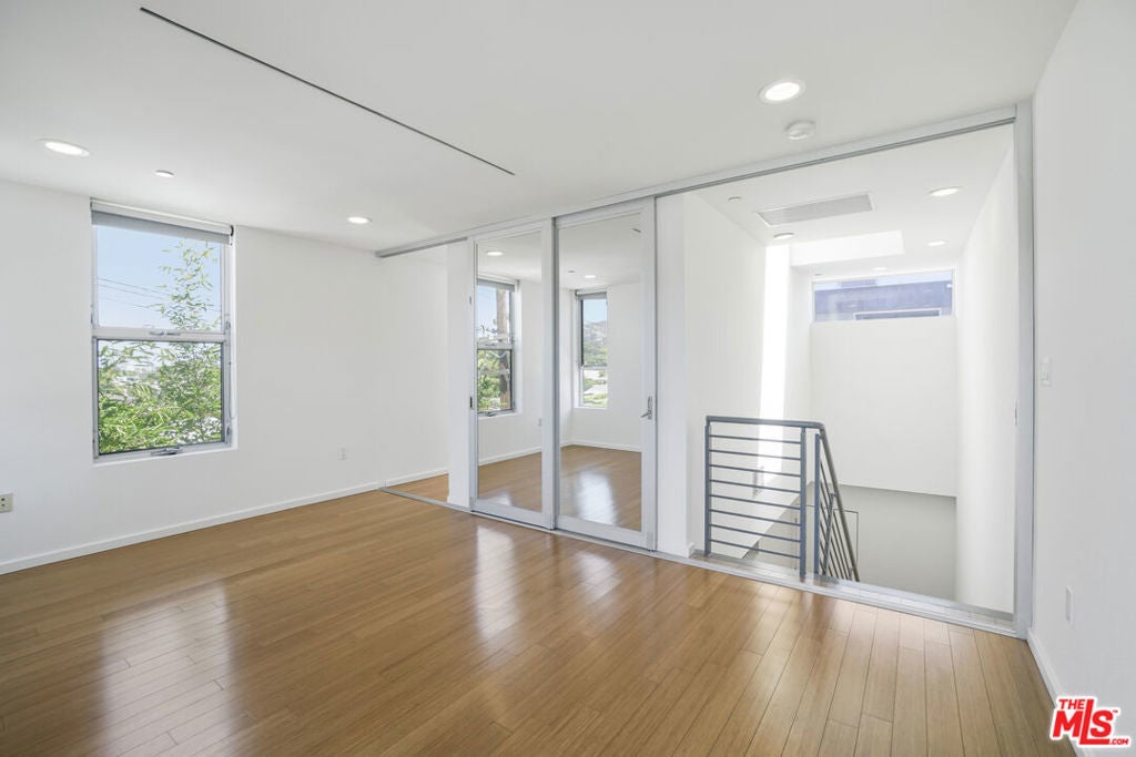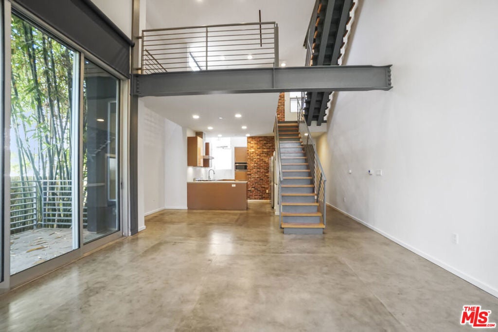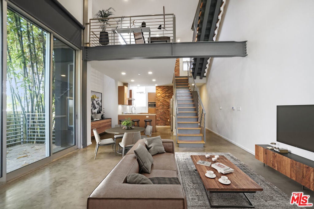 Architectural Corner Loft in West Hollywood Fairfax District. Multi-level with 20' ceilings and tons of windows, and only one common wall. Two bedrooms plus den and two and a half baths spread out over four levels and featuring two large balconies. Tons of closet space, designer baths, and kitchen. Small building with only 12 units and a short walk to Whole Foods, Laurel Hardware, Delilah, Isabel, and much more. Two assigned parking spaces underground with EV charger, guest parking, and a hot tub in the building. A rare find, and it won't last long.
