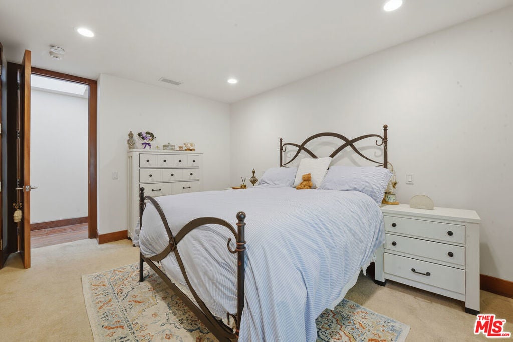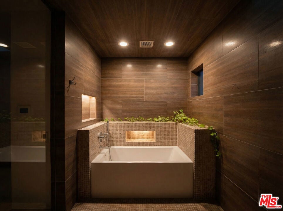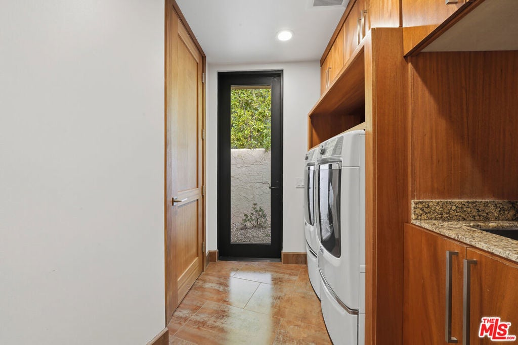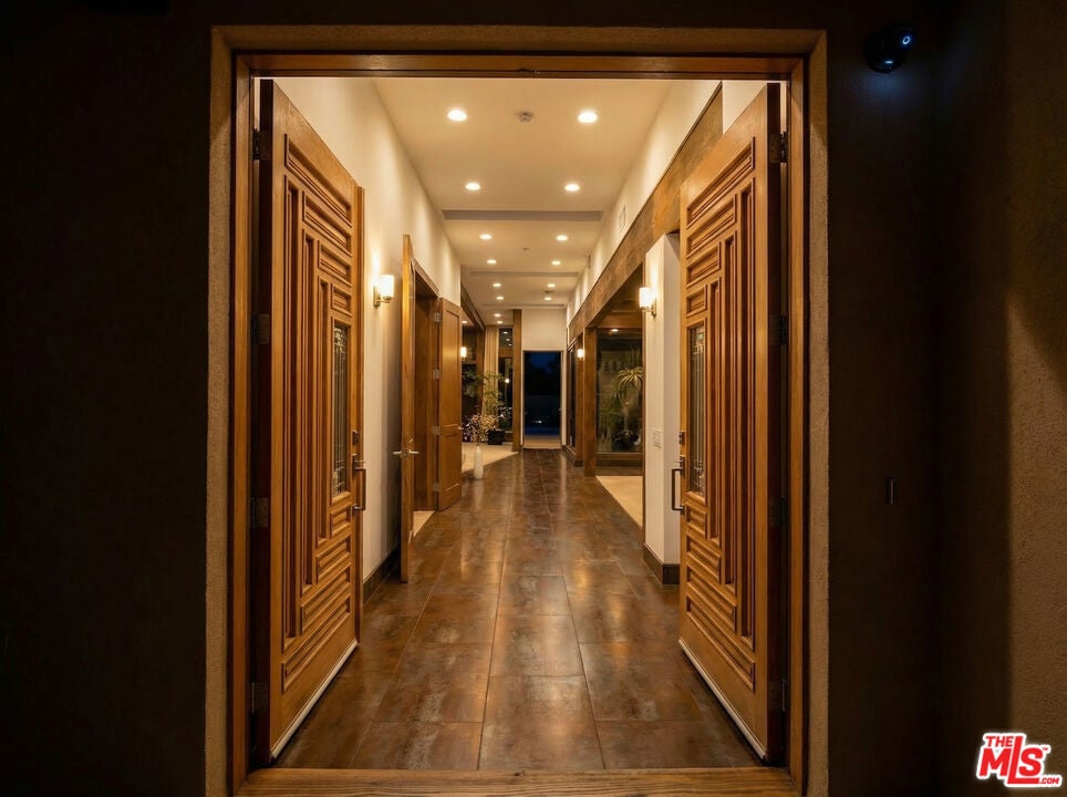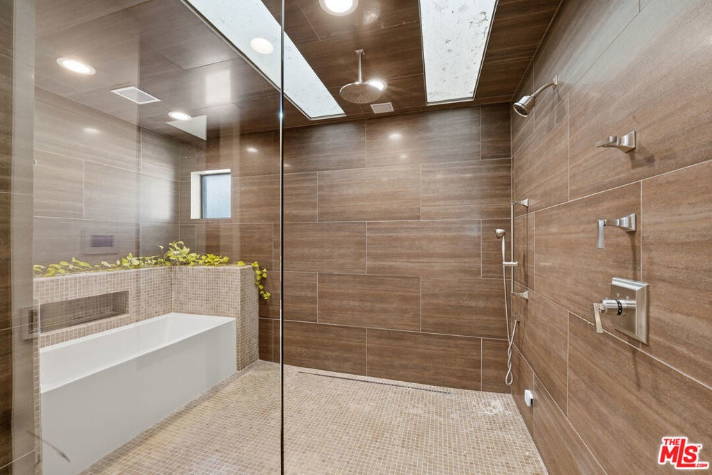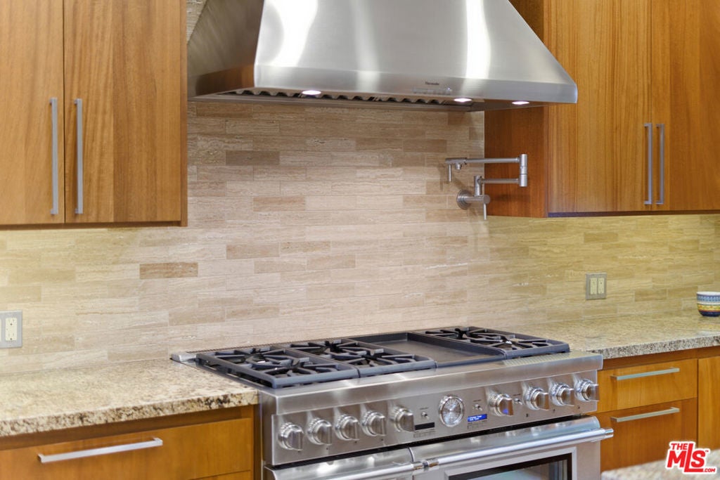 Welcome to a rare architectural masterpiece in the heart of prestigious Amestoy Estates. Rebuilt in 2014, this single-story mid-century modern estate blends timeless design with today's most refined luxury, offering an unparalleled living experience on a private cul-de-sac. Spanning approximately 3,835 square feet, this four-bedroom, three-and-a-half-bath residence is a true showpiece of craftsmanship and intention. Exposed wood beams, clerestory windows, skylights, coffered ceilings, and exquisite inlaid wood details create a warm yet sophisticated atmosphere, while stacked stone facades and designer lighting elevate every space. At the heart of the home, the great room flows effortlessly into a stunning open-air atrium with cascading waterfalls and lush greenery. A serene, resort-style focal point that blurs the line between indoor and outdoor living. Custom built-in cabinetry, stone slab countertops, and heated floors reflect a level of quality rarely found. The gourmet kitchen is a chef's dream, featuring premium Thermador appliances, a dual-oven gas range with custom hood, two wall ovens, built-in refrigerator and dishwasher, walk-in pantry, and elegant finishes ideal for both entertaining and everyday living. A sophisticated wine bar completes the experience. The primary suite is a private sanctuary with its own fireplace, spa-inspired bath with jetted soaking tub and steam shower, and luxurious finishes throughout. Three additional bedrooms offer walk-in closets with cedar paneling and automated lighting, providing both beauty and function. Modern comforts include solar panels, a whole-house water filtration system, dual tankless water heaters, dual HVAC systems, a dedicated utility room, and a three-car garage with epoxy flooring and custom storage cabinetry. Step outside to your private resort-style backyard, where you will find a full tennis court alongside a sparkling pool perfect for both active living and elegant entertaining. This is not simply a home, it is a statement of lifestyle, design, and distinction. A one-of-a-kind opportunity in one of Encino's most coveted neighborhoods.