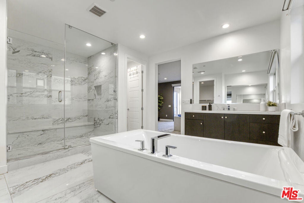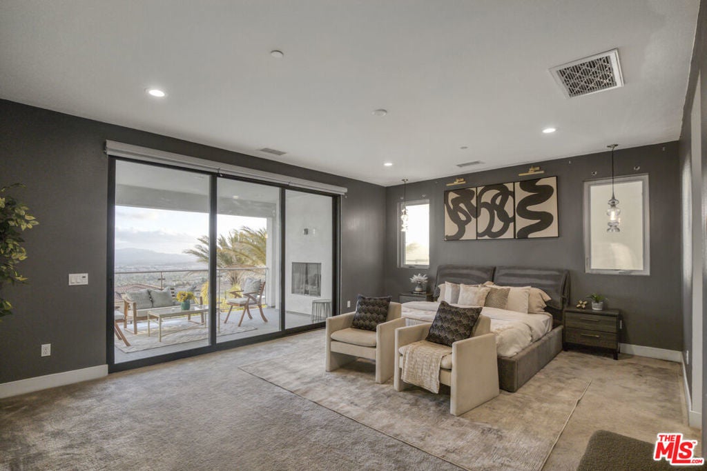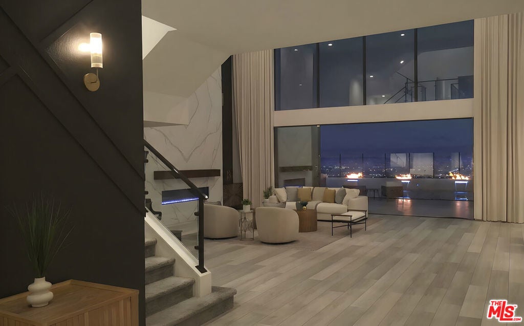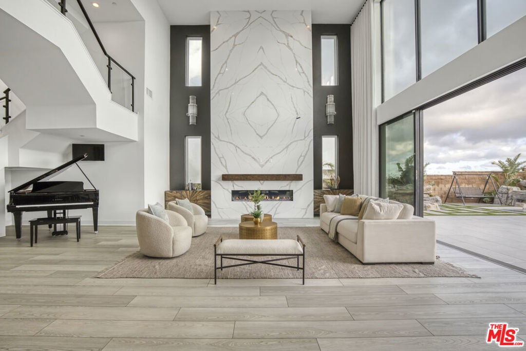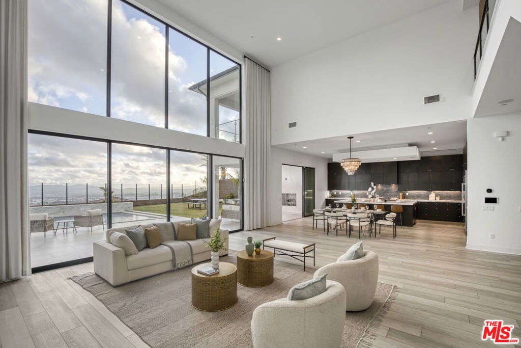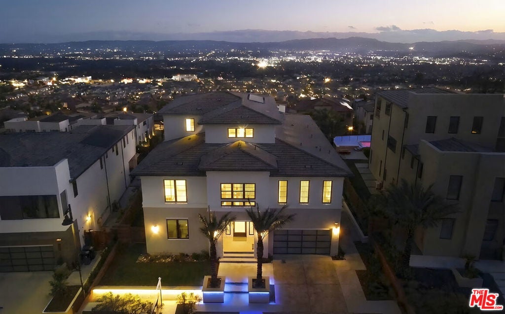 Situated in the prestigious guard-gated Westcliffe community of Porter Ranch Hills, this exceptional tri-level luxury estate offers a truly elevated living experience defined by sophistication, scale, and unforgettable views. Designed for both grand entertaining and everyday comfort, the home features a dramatic open-concept floor plan with soaring ceilings spanning all three levels and expansive stacking glass doors that seamlessly blend indoor and outdoor living. Enjoy breathtaking, full 360-degree unobstructed panoramic views of the city skyline, rolling hills, and surrounding mountains from nearly every vantage point. Refined finishes elevate the interiors, including premium flooring, custom cabinetry, designer lighting, and a show-stopping gourmet kitchen equipped with top-of-the-line appliances, an oversized island, and sleek quartz countertops ideal for both culinary creations and social gatherings. The luxurious primary suite is a private sanctuary, offering stunning vistas, a cozy patio with fireplace, and a spa-inspired bath designed for ultimate relaxation. Generously sized secondary bedrooms provide comfort and privacy, complemented by beautifully upgraded bathrooms throughout. Outdoors, the resort-style backyard invites you to unwind with a sparkling pool and spa set against a backdrop of endless views. The second-story loft creates the perfect cinematic lounge experience, while a dedicated gym and elegant office add functionality and balance. The expansive third level is an entertainer's dream, complete with its own private bathroom and stacking doors that open to a view balcony showcasing dazzling city lightsideal for unforgettable sunset gatherings. Owner-owned solar panels enhance energy efficiency and long-term savings. A rare opportunity to own one of the finest and most coveted view lots in all of Porter Ranch's most desirable communities