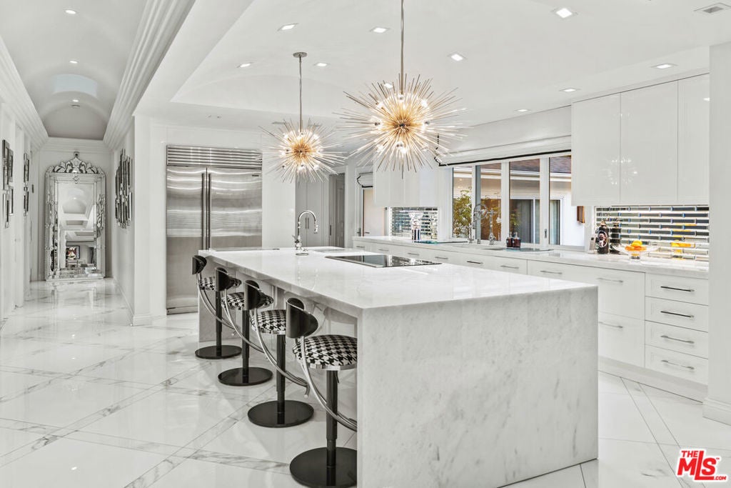 Welcome to this spectacular, decorator perfect, Mediterranean style home adjacent to the Bird Streets. Featuring 3 custom bedrooms, 3 baths, with direct access from the garage. Enter into the sensational formal entry, with a custom made chandelier, gorgeous marble floors throughout, then in to the beautiful formal living room with dome ceiling, fireplace, recessed lighting, an abundance of windows and french doors leading out to a patio. The splendid large formal dining room features a dome ceiling, fireplace another custom chandelier, and Fleetwood sliding doors opening to the outside. The exquisite chefs kitchen has an oversized white island with custom lighting overhead. A butlers prep area, two wine coolers, top of the line appliances, walk in pantry and views of the pool with a significant appealing waterfall. The family room has a double sided fireplace, built in bookshelves, dome ceiling, and Fleetwood doors. Enjoy the designer powder room, then enter the sizeable master bedroom with walk in closet, a beautiful chandelier, custom master bath with a steam shower, soaking tub, and dual sinks. The secondary spacious bedroom with a large walk in closet, has views of the pool, spa and rear patio. The rear yard has in addition to the pool/spa, an additional spacious side yard as well as a deck with cabana. The views are spectacular. There are custom skylights throughout for maximum lighting, recessed LED lighting, solid core doors, built in speakers throughout, and 12 high def cameras for optimal security and privacy.
