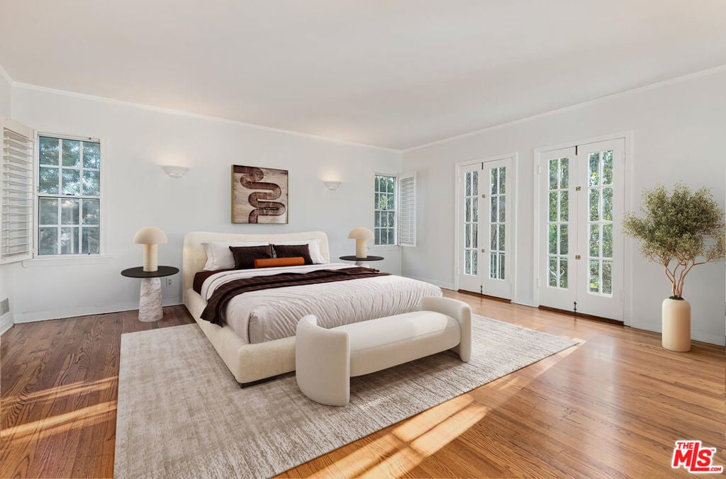 Buyer offer packages are suggested to be submitted by Wednesday, March 11th at 6PM. Please request the Offer Submission Package beginning on Tuesday, March 10th so that you will have the guidelines for your presentation outlined. This elegant, updated, and spacious 2sty Mediterranean is available for sale for the first time in 28 years. Featuring light-filled rooms with high ceilings, French doors, and wood/marble floors, this gem has a fantastic layout with an open entertaining flow between the living room, the den/bar room, and the large beamed ceiling family room. A gracious entry with a sweeping staircase and chic powder room sets the tone. Fabulous chef's center-isle kitchen with top stainless appliances is accessed from a lovely formal dining room and charming breakfast room. 4 generous bedrooms upstairs (including 2 possible primaries) and maid's quarters downstairs. The main primary suite contains a sitting area, huge walk-in closet, and a luxurious updated bathroom. The alternate primary suite exhibits original purple Deco-era wall tilework in the glamorous bathroom. With a lot depth of 165ft, the rear yard is immense in scale and displays lawns, patios, pool, pool bath, storage room, garage with secondary laundry facilities, and mature foliage. Circular drive along with a straight connected gated driveway and garage affords tremendous off-street parking. Ultimate curb appeal on a beautiful Jacaranda tree-lined road moments from the best of Beverly Hills (including our renowned weekly Farmers' Market) and the Westside. Sold in strictly "as is, where is" condition. Seller selects services.