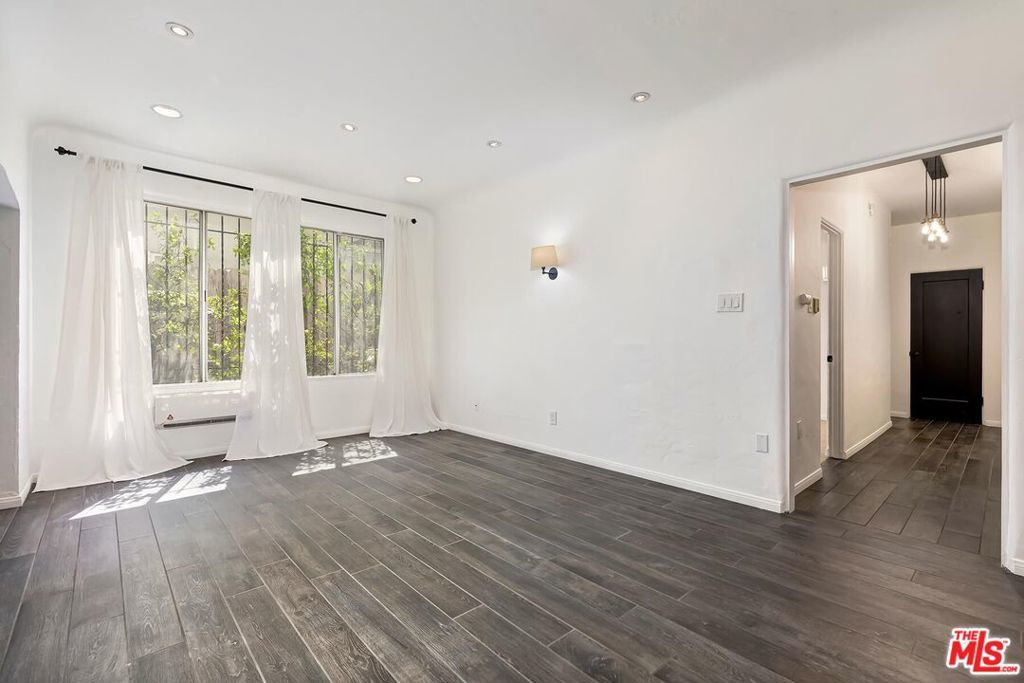 Bright, move-in ready 1 bed 1 bath at the famed Hayworth Gardens; West Hollywood's Premier Vintage Spanish condo building circa 1929. Lots of charm & character. Secure 1st floor unit with engineered wood floors, 2 mini-split heating & cooling units, recessed lighting, updated kitchen & bathroom, good closet/storage space, dining room, high coved ceilings, and a serene view of foliage. Located very close to the community laundry room for easy convenience. 3 gated secure parking spaces (uncovered). Dedicated, secure storage space is quite large. HOA dues include gas, water, electric, and trash. Controlled access building with gorgeous courtyard & fountain. Moments to Bristol Farms, Trader Joes, Whole Foods, the world famous Sunset Strip, the Director's Guild, and all of the fun and excitement West Hollywood offers featuring the very best in restaurants, cafe's, boutiques, nightlife, and shopping. Pet friendly building. Beautiful tree-lined street. Wonderful community feeling. This will touch your heart and soul.