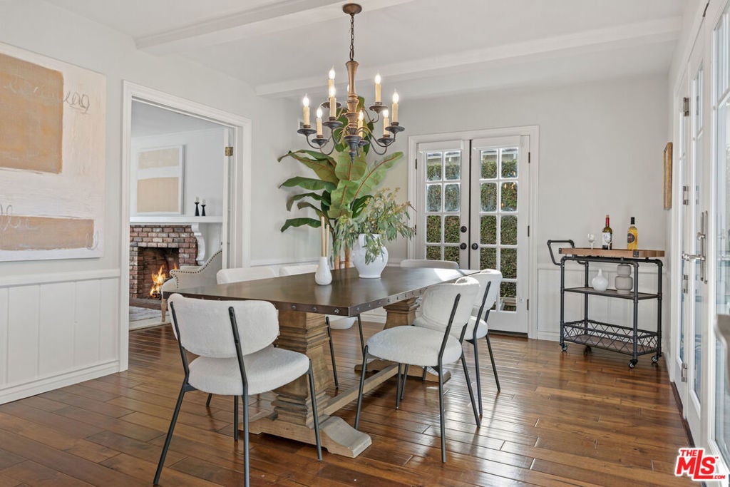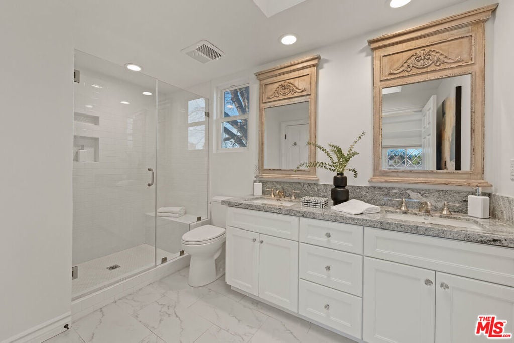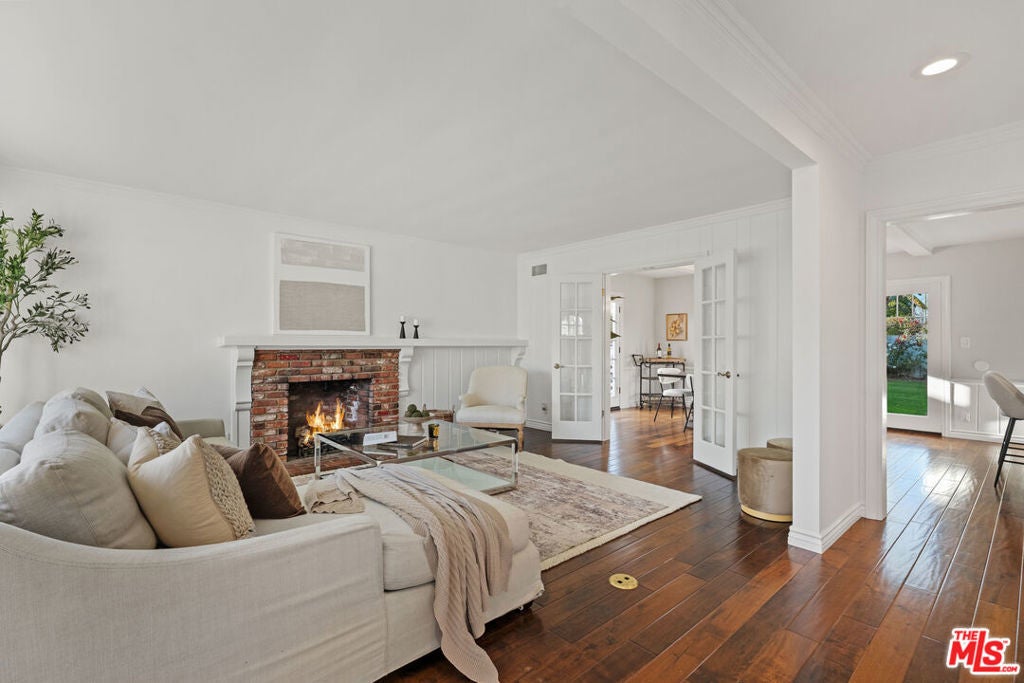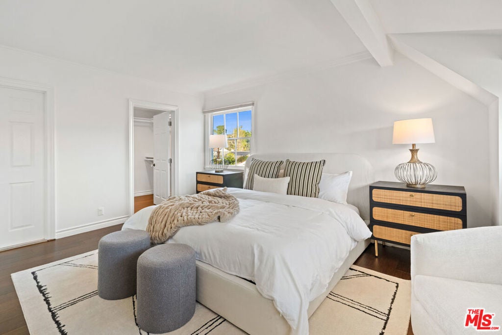 Storybook two-story on a beautiful cul-de-sac in prime Woodland Hills. Spacious and thoughtfully updated throughout, featuring an open chef's kitchen with expansive countertops, breakfast bar, double ovens, stainless appliances, abundant cabinetry, and natural light. Distressed hardwood floors, fireplace, and French doors enhance the flexible living and dining spaces. Oversized primary suite with walk-in closet and updated bath access. Secondary bedroom with adjoining alcove ideal for office/study. Third bedroom with yard views. Fourth bedroom/den with direct bath access. Separate upstairs bonus family room/office (optional 5th bedroom without closet) offers exceptional flexibility.Large, flat, fenced backyard with mature landscaping, brick patios, pergola, tangelo tree, and outdoor TV perfect for entertaining. Walking distance to El Camino & Hale. Minutes to Warner Center and The Commons. *Upgrades: CertainTeed Presidential Shake roof (2023), new electrical panel (2022), Noritz tankless water heater (2025), new upstairs flooring (2022), guest bedroom windows (2022), ceilings removed/repainted (2022/2026), front & backyard redesign (2023), EV charger (2023), Nest thermostat (2025), Samsung washer/dryer (2023), Graber cordless blinds (2023).