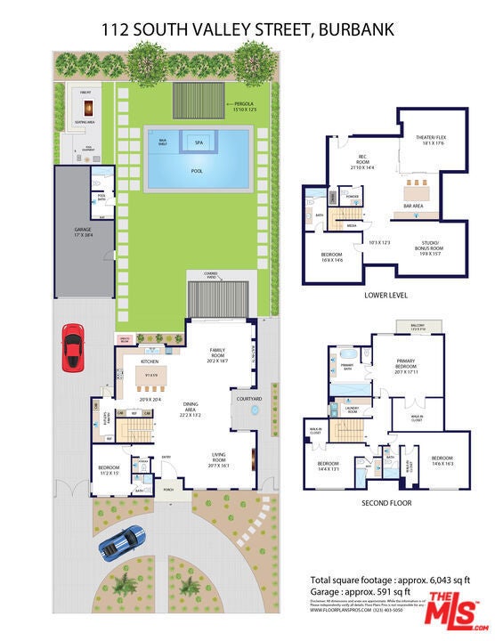 Every great neighborhood has that one special street. The one people talk about. The one people wait for. Welcome to 112 South Valley, a newly constructed, modern masterpiece that redefines luxury living. Perfectly positioned on one of Burbank's most coveted cul-de-sacs, this home offers the best of both worlds: the peace of mind that comes with Burbank's exceptional city services, outstanding public safety, and top-rated schools, paired with the prestige, warmth, and community charm of Toluca Lake. The designer thoughtfully curated every detail of this 6,043-square-foot residence to showcase architectural brilliance and deliver the soul-stirring promise of a life well lived. From the moment you arrive, the dramatic, solid white oak pivot front door opens to a world of refined elegance. Soaring ceilings and walls of Marvin windows flood the space with natural light, while rich textures, such as Marmorino Italian plaster and Portolan limewash, create an ambiance of sophistication. Whether you're gathering in the expansive living room, relaxing in the family room, or entertaining in the chef's kitchen adorned with custom Shinnoki walnut cabinetry, oversized double faucet sink, Thermador appliances, and a sleek butler's pantry, this home is an experience of flow, function, and flawless beauty. Five en-suite bedrooms, each a private retreat, offer comfort and serenity. The primary suite, situated above the expansive landscaped grounds, features a spa-inspired bath, a custom walnut walk-in closet, and a balcony where you can greet the day with sunshine and the soothing sounds of the morning air. Downstairs, a state-of-the-art theater, rec room, bonus space, and a sleek bar come together to create the ultimate setting for fun and entertainment, whether you're hosting game night, enjoying a movie with family, or simply unwinding with friends in style. Step outside and be transported. The backyard is a sanctuary of its own, featuring a black-bottom saltwater Pebble Tek pool with a Baja shelf and spa, two innovative motorized patio systems, an Ipe wood fire pit bench, and a complete outdoor bath/mudroom. Entertain effortlessly or unwind in total privacy beneath the stars. The home offers the latest in technology and convenience, featuring Control4 smart home automation, a quad-zone Carrier climate control system, an integrated sound system, custom lighting, and sleek Samsung washer/dryers. Additional amenities include fully underground electrical, solar panels for enhanced energy efficiency, and an electric car charger in the spacious garage. Every element from fluted limestone accents to custom linear drain installations reflects the highest standards of design and craftsmanship. However, the true luxury of 112 South Valley lies in the lifestyle it offers. Here, neighbors greet each other by name. Stroll into Toluca Village for your morning coffee, dine al fresco at your favorite local spot, or attend a community event where everyone feels like family. You're minutes from top-rated schools, major studios, the Lakeside Golf Club, and iconic LA landmarks like Griffith Park and the Hollywood Bowl. 112 South Valley is more than a home; it's your place in a vibrant, welcoming community with a rare opportunity to live in modern splendor, in a neighborhood where connection and character matter.