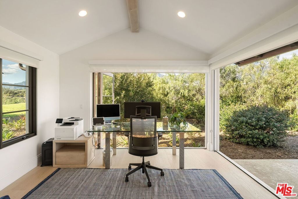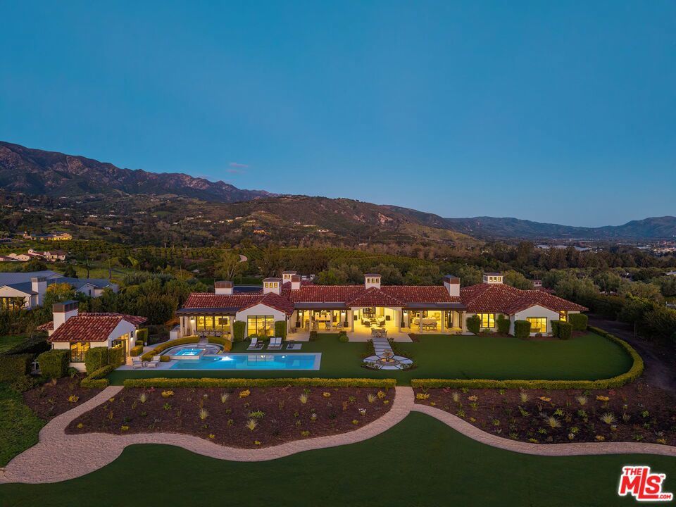 Discover an extraordinary opportunity at Montecito Ranch Estates, an exclusive gated enclave offering unparalleled privacy and serenity. Perched on over 5.7 acres, this single-level coastal retreat captures sweeping ocean and mountain vistas that stretch toward the horizon, delivering the quintessential Montecito lifestyle. Bathed in natural light, the refined interiors showcase seamless indoor-outdoor flow through floor-to-ceiling sliding doors, dual kitchen islands for effortless entertaining, and meticulously selected high-end fixtures and finishes throughout. The generous primary suite is a private sanctuary, featuring direct garden access, a luxurious spa-inspired bathroom, and an expansive walk-in closet designed for effortless elegance. Step outside to your own resort-style oasis: lush, landscaped gardens, multiple al fresco patios, a sparkling pool and a vast grassy lawn that gazes out over the Pacific. A separate guest house with its own bathroom provides ideal accommodations for visitors or extended family. Thoughtfully designed with security and tranquility in mind, this exceptional property places you just 7 minutes from the charm of Montecito's Lower Village, world-class dining at Lucky's, and the prestigious Coral Casino. Where breathtaking panoramic views meet sophisticated modern luxury and prime location, this rare offering represents the coastal Montecito dream you've been seeking. Room for pickleball and bocce ball courts.
