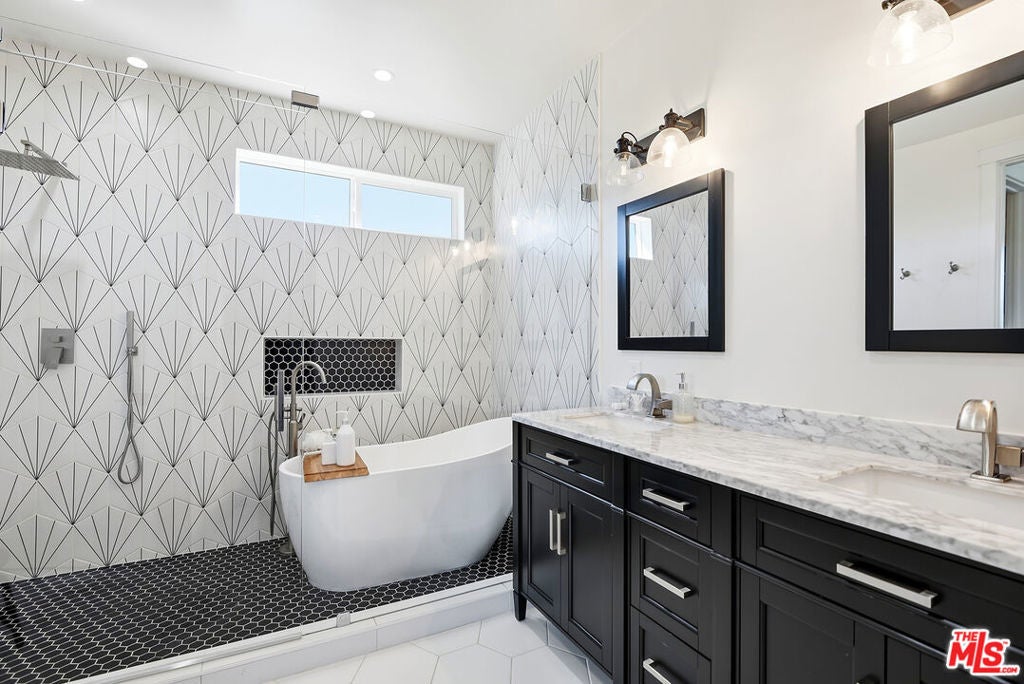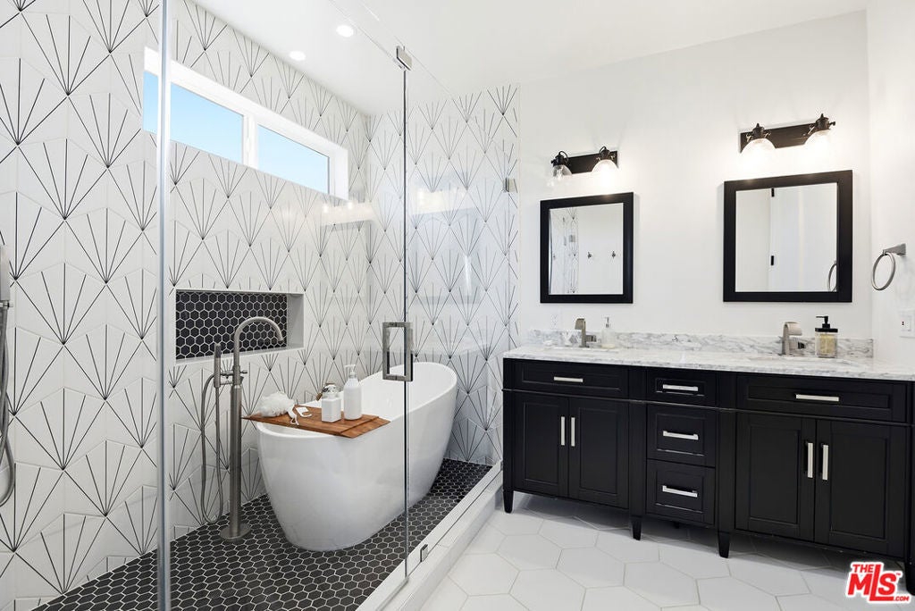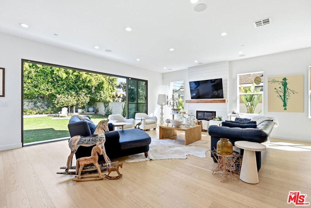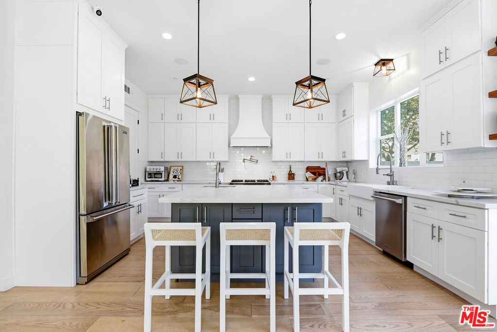 Stunning newer construction 5-bedroom, 4.5-bathroom home located in the coveted North Kentwood neighborhood in Westchester. This custom-built modern farmhouse is situated on a tree-lined street. Meticulously crafted with modern elegance, this residence combines contemporary design with timeless appeal. Inside, the bright open floorplan features soaring ceilings and an abundance of natural light, wide plank European white oak flooring flowing throughout, Shiplap, and custom built-ins adding to the home's sophisticated charm. The chef's kitchen is equipped with Viking appliances, quartz countertops, an oversized island with prep sink, wall-mounted pot filler and custom hood, custom tile backsplash, and custom cabinetry. A seamless transition from the kitchen to the living area, which opens directly to the outdoor space through panoramic sliding glass doors , creating the ideal setting for entertaining. The backyard is a private oasis with lush greenery and a charming patio. Designed for both relaxation and entertainment, the home also includes a spacious living area with a cozy electric fireplace with a floating walnut mantle, a separate dry bar with double-wide wine fridge, and a stylish powder room. The downstairs bedroom features a private en-suite bathroom and charming views of the tree-lined street, making it an ideal space for a home office or a welcoming guest suite. The second level features 4 bedrooms and 4 bathrooms, including the luxurious primary suite offering a private balcony, dual walk-in closets, and a spa-like en-suite bathroom with a marble dual vanity and a wet room with a soaking tub. Additional premium features include a two-car garage with an EV charger, dual-zone, central air and heat, upstairs laundry with sink, and a smart home system which includes keyless entry, lighting control, surround sound, security cameras, and video doorbell.