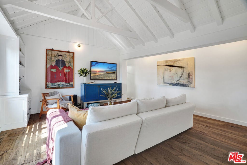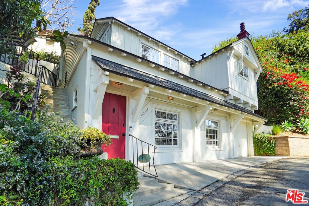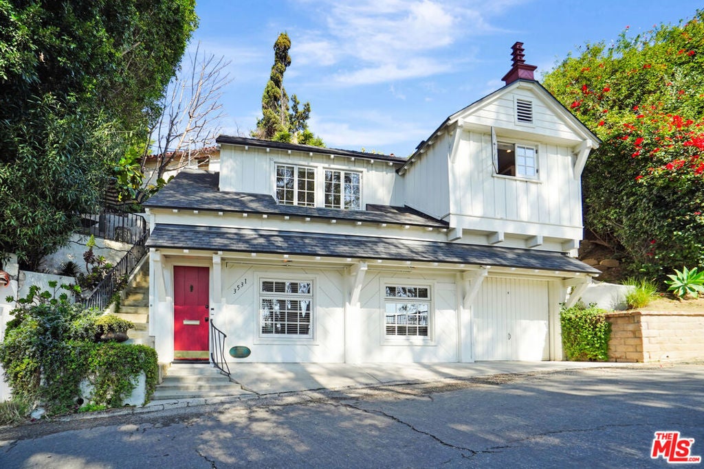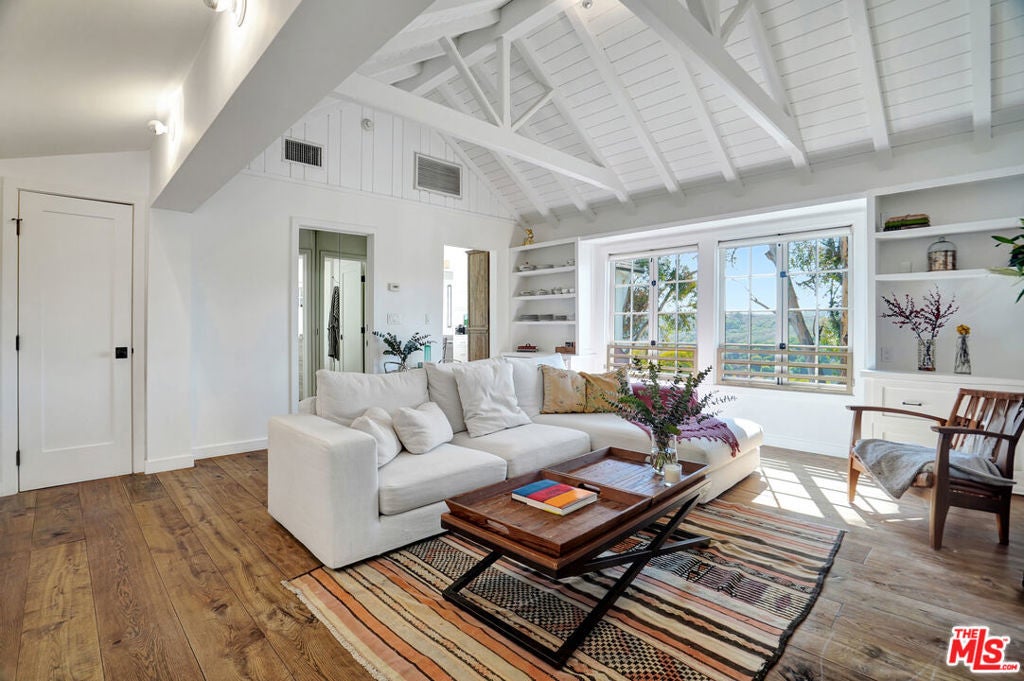Set against sweeping canyon vistas moments from Lake Hollywood, this striking two-story guest residence offers a rare blend of architectural character and serene privacy. Dramatic exposed wood beams and soaring ceilings define the expansive living spaces, where walls of light frame picturesque hillside views. The thoughtfully curated layout features two bedrooms and one bath, complemented by an open living area that captures both warmth and scale. Natural textures, elevated ceilings, and tranquil sightlines create an atmosphere that feels both sophisticated and intimate. Privately positioned in one of Los Angeles' most coveted hillside enclaves, this residence offers a refined escape just minutes from studios, trails, and the energy of Hollywood yet worlds away in ambiance.