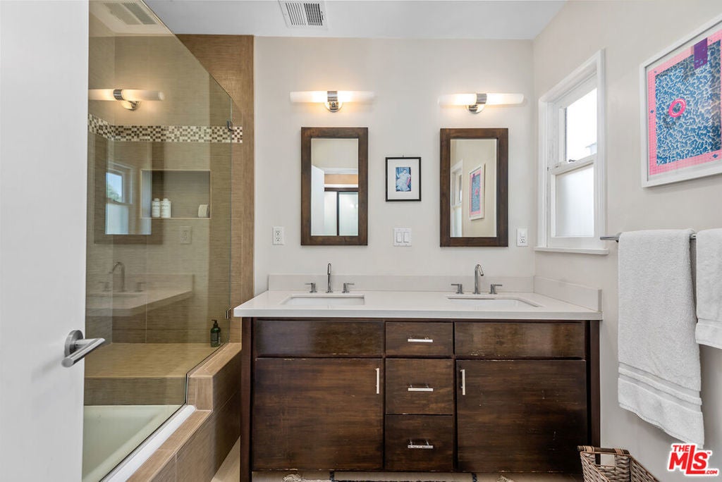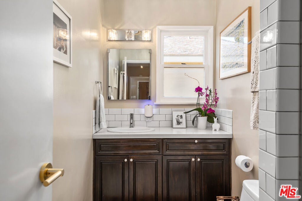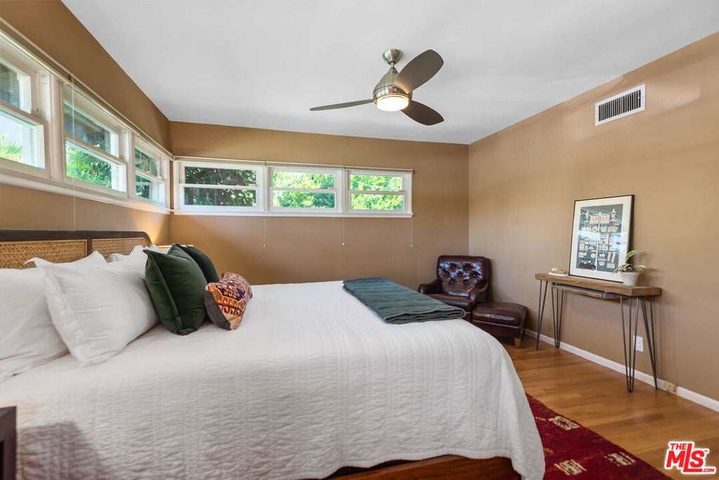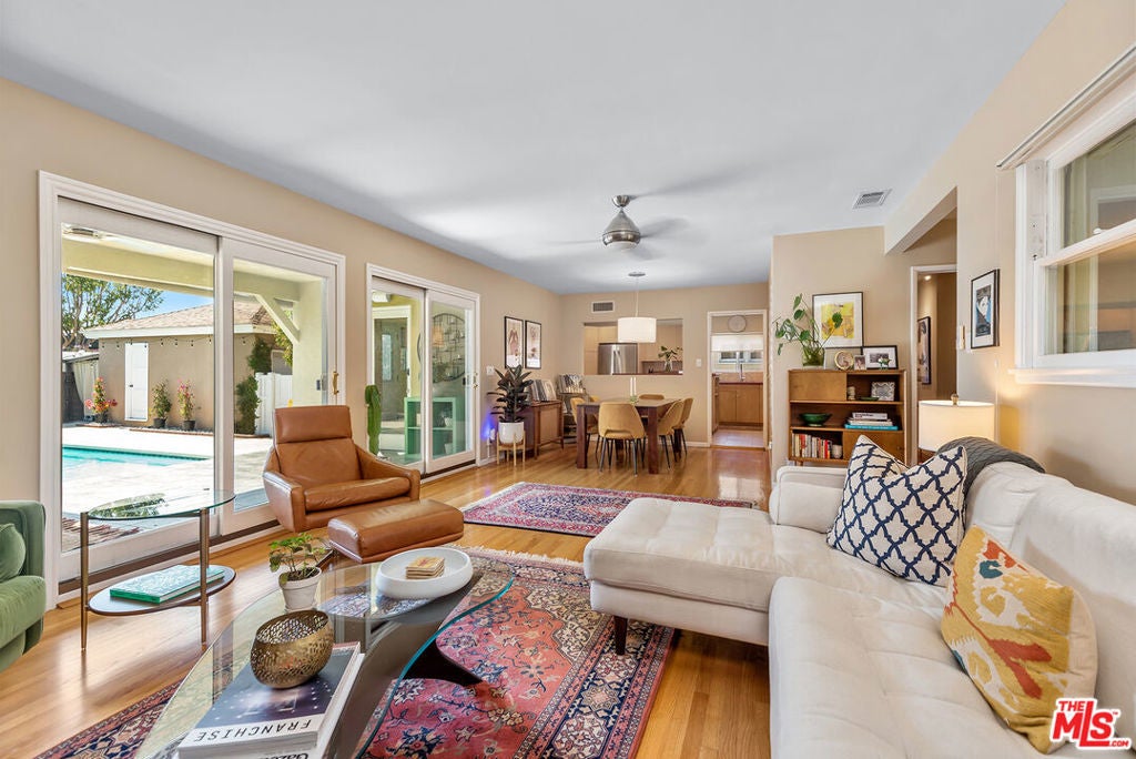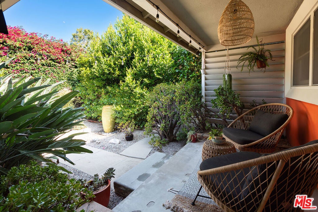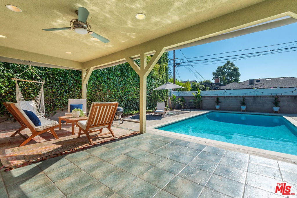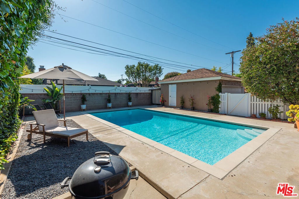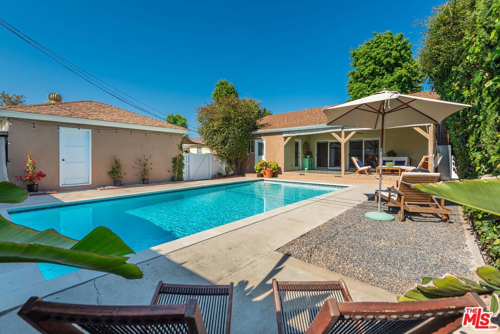 Welcome to this wonderful 3-bedroom, 2-bathroom home set on a lush landscaped lot. Step in through the beautiful bougainvillea-covered gate to your private court yard. The living room boasts wood floors, a fireplace, and a dining area, complemented by two sets of glass doors leading to the backyard. The remodeled kitchen features maple cabinets, updated stainless steal appliances, Caesarstone counters and a spacious center island with breakfast bar and storage amenities.The spacious primary bedroom provides dual closets and an updated bathroom with dual sinks and a soaking tub with a rain showerhead. The third bedroom, with its charming window seat, offers versatility as a den or additional bedroom. Outside, the private yard hosts a covered dining patio and a swimmer's pool, ideal for outdoor enjoyment. Don't miss the opportunity to experience the allure of this exceptional property firsthand.
