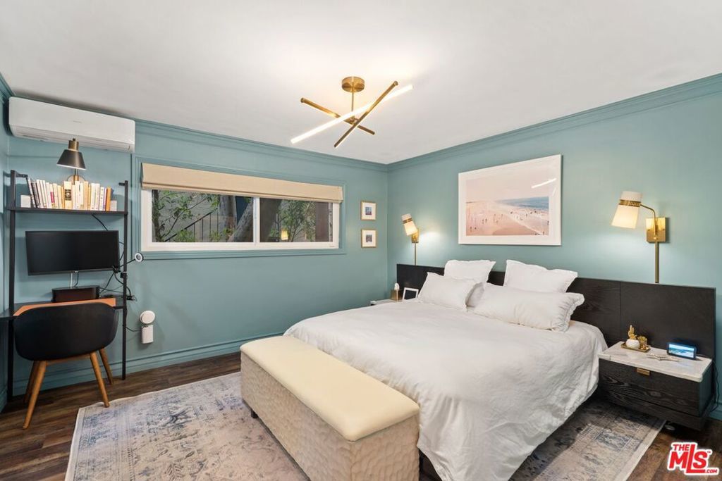 Experience the ultimate in California luxury living in this beautifully remodeled condo, just moments from the lively streets of West Hollywood. Step into a spacious living area, ideal for entertaining or relaxing after a long day. Custom built-ins frame your flat-screen TV while offering plenty of storage and display space for your books and decor. The open-concept layout flows effortlessly into a modern chef's kitchen, featuring Thermador appliances, quartz countertops, and a peninsula with seating, perfect for casual meals or hosting guests. The expansive primary suite boasts two walk-in closets with custom cabinetry and soft-close drawers, keeping your wardrobe impeccably organized. The adjacent well-appointed bathroom includes a large vanity with built-ins, a heated toilet seat, and a glass-enclosed shower and tub for ultimate relaxation. A second bedroom off the living space works beautifully as a guest room or home office. This home is enhanced with recessed lighting controllable with your phone, elegant fixtures, a built-in coffee bar with refrigerator drawer, in-unit laundry, and two mini-splits for dual-zone personalized comfort. The unit is conveniently located close to the pool, making it easy to enjoy a swim or soak up the sun. It also includes a secure underground parking space, with additional guest parking available. The complex also offers a gym and a stunning rooftop deck with panoramic views of DTLA and West Hollywood, perfect for work, relaxation, or entertaining. Situated in the Norma Triangle, mere minutes from the West Hollywood Park and the best shopping, dining, and nightlife the city has to offer, 960 Larrabee St is a modern retreat you'll love calling home!