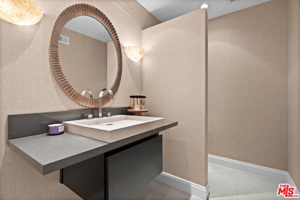 This exclusive gated estate in Trousdale presents an exquisite blend of luxury and comfort with 5 spacious bedrooms and 6 elegant bathrooms. The home features dramatic high ceilings and rich hardwood floors throughout. A grand entry foyer ushers you into expansive formal living spaces. The gourmet kitchen is a chef's dream, showcasing a central island, top-of-the-line appliances, and a charming breakfast area. The large family room includes a cozy fireplace, while the living room offers another inviting fireplace. The master suite is a private retreat with an extensive dressing area and dual bathrooms. All rooms open seamlessly to entertainer's patios, providing breathtaking canyon, city, and ocean views. Enjoy the sun-drenched swimmer's pool and spa, complete with a BBQ area for al fresco dining. The gated motor court provides ample parking for several vehicles, ensuring convenience and privacy.