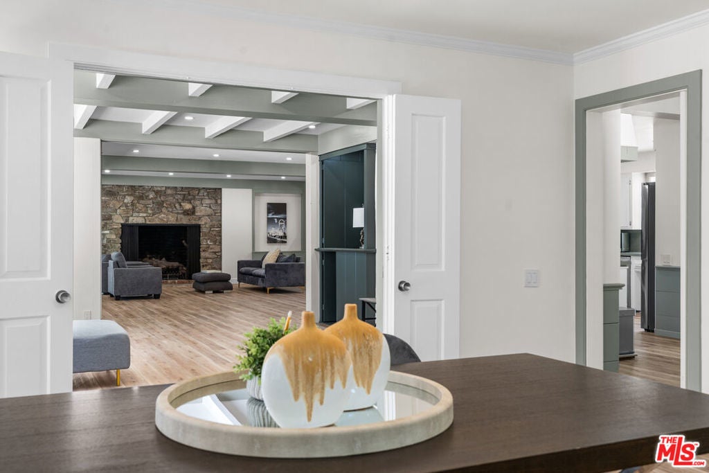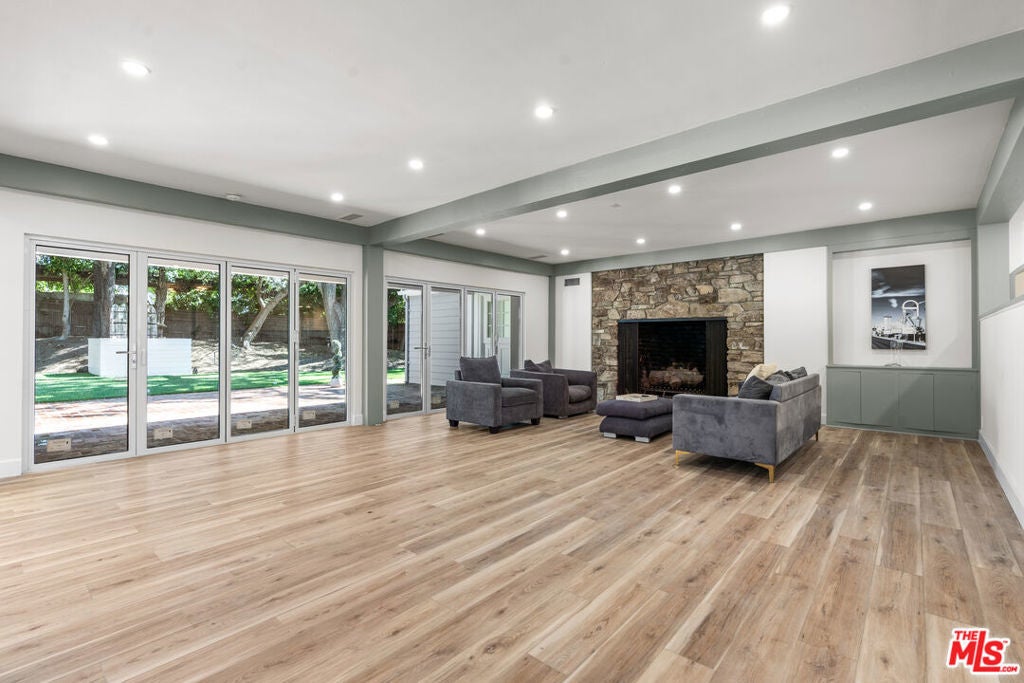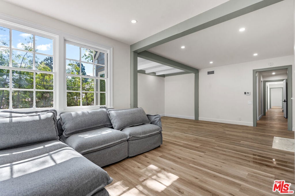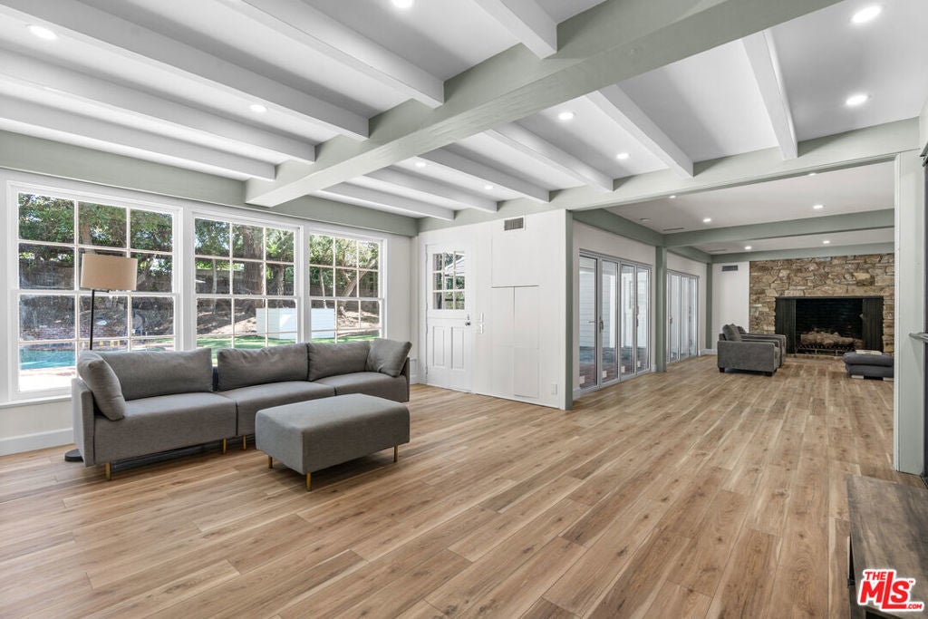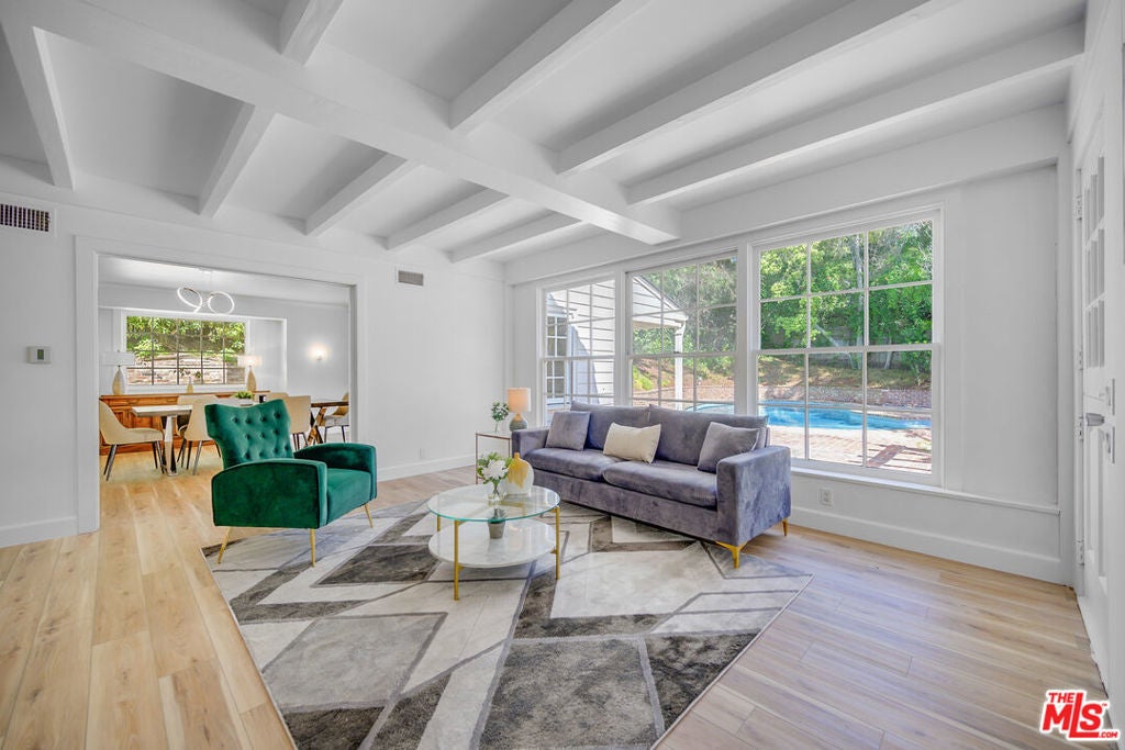 BEAUTIFULLY REMODELED 2026! 1/2 ACRE LOT. (6 BED/8 BATH). MAIN LEVEL - 4 BEDROOMS-GRAND LIVING SPACES. SECOND LEVEL - 2ND LIVING ROOM, LIBRARY/OFFICE, 2 BEDROOMS, PLUS STORAGE. Set on one of the most prestigious streets of Beverly Hills Flats , this is a rare and exciting opportunity not to be missed. The floor plan is perfect - with all living and family rooms connected and accessible to the kitchen and breakfast area AND a formal dining room. Seamless flow throughout. Architecturally designed by the renowned Gerard Colcord. Outside, you'll discover a tranquil backyard with a pool, spa, lush landscaping. Completely secluded, private and quiet. DRIVEWAY PARKING FOR 5 CARS, PLUS A 2 CAR GARAGE.