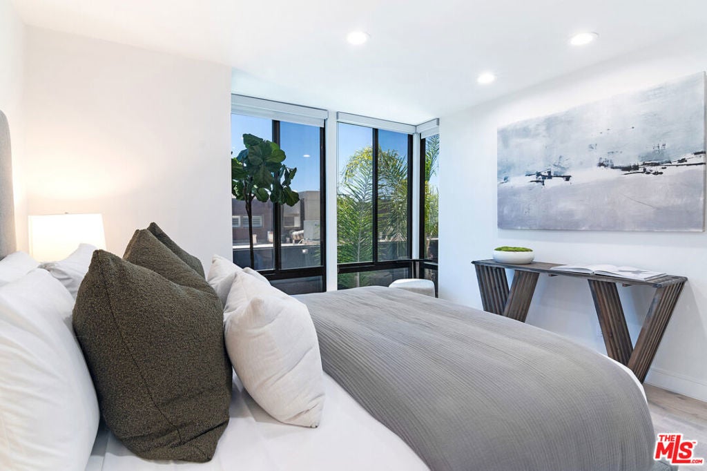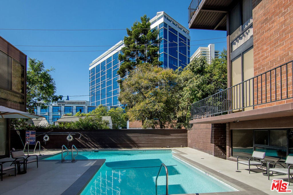 Newly renovated architectural townhome in the award-winning Carolwood Condominium residences, designed by renowned architect Ron Goldman, ideally situated on the coveted border of Beverly Hills. This sophisticated two-story residence offers 2 bedrooms and 3 baths, featuring high ceilings, expansive floor-to-ceiling windows, and refined designer finishes throughout.The dramatic step-down living room showcases hardwood floors, a fireplace, and glass sliders opening to a private patio oasis perfect for seamless indoor-outdoor entertaining and al fresco dining. The contemporary kitchen features custom cabinetry, premium stainless steel appliances, and sleek finishes. The light-filled primary suite offers a spa-inspired bath with a dual shower, creating a tranquil retreat. Additional highlights include two secured parking spaces and access to the building's fully equipped fitness center, resort-style pool, and spa. A rare opportunity to own an exceptional architectural townhome in a prime Beverly Hills-adjacent location. Truly a must-see.